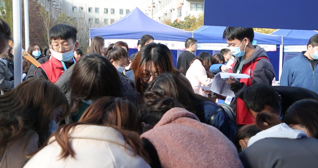 许多参会企业展位前排起了长长的队伍,学生手持简历,积极与企业招聘人员交流,努力争取自己的心仪岗位。