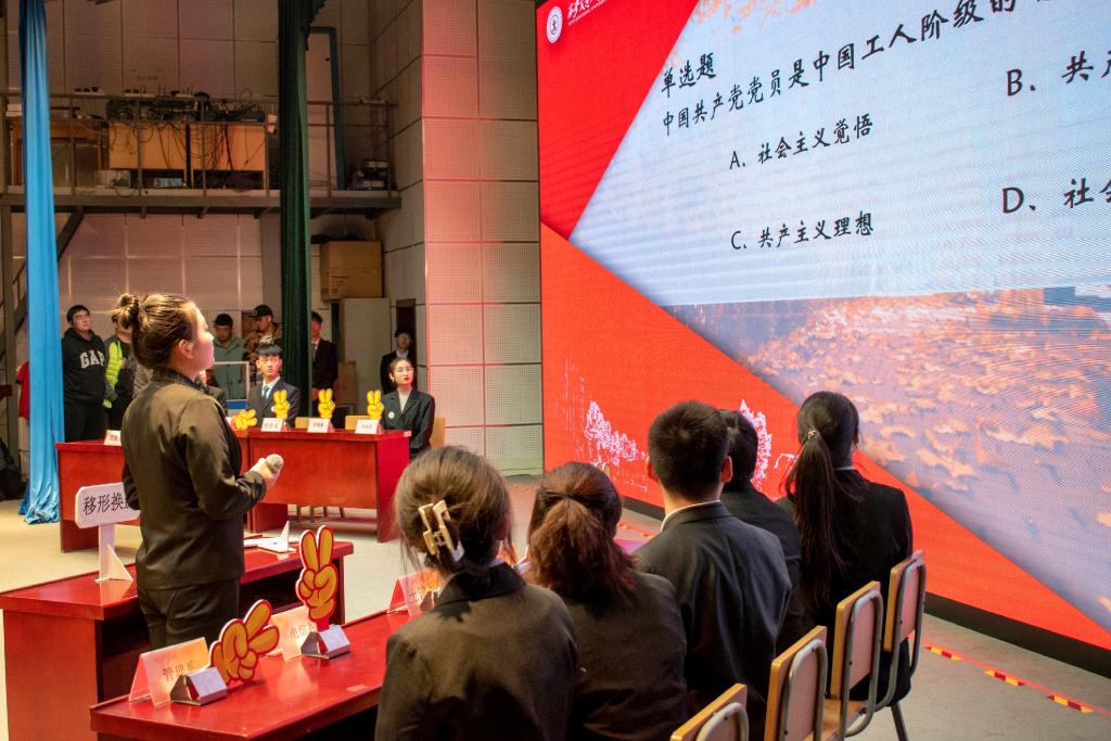 为贯彻习近平总书记重要指示精神,加强学生党员、入党积极分子的理论学习,经过各系前期初赛的角逐与选手推荐,威尼斯7798cc于12月17日晚在学生活动中心举办“学四史,守初心,担使命”为主题的理论知识竞赛决赛。担任本次决赛评委的老师有:院党委书记张爱萍,党委委员、纪委书记朱普社,党委委员、工会主席冀祥,党委委员于大光,纪委委员、学生服务中心主任张学堂。出席本次活动的嘉宾有:机械工程系主任刘吉轩、管理系副主任郭关科、经济系副主任史冬梅、传播系副主任刘强、机械工程系教工党支部书记李娜娜、机械工程系主任助理门静、院团委书记吴昊翔,各系学生工作主管、团工委书记以及辅导员。本次比赛由传播系李若宁、解文杰同学主持。