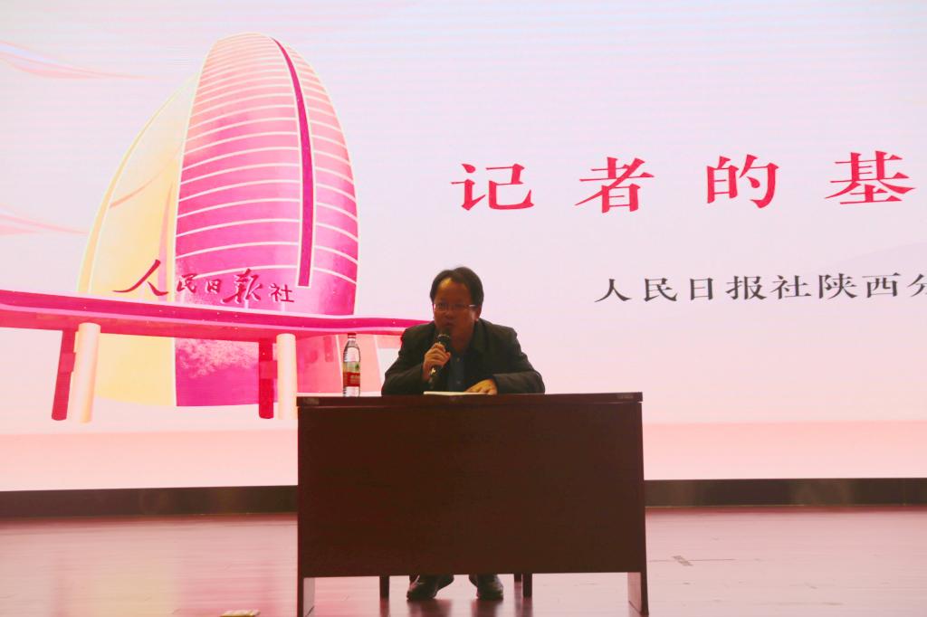 会议第二阶段召开人文大视野系列讲座之记者的基本素养。本次讲座由人民日报陕西分社社长王乐文主讲。王社长结合最新社会热点事件,向学生讲解记者具备新闻素养的重要性和必要性。通过记者理论素养、能力素养、道德素养、业务素养四方面,结合四全媒体、舆论监督、党性原则等话题,着重强调新闻工作者一定要“听党话,跟党走”,鼓励学生要不断加强新闻理论学习和新闻业务实践,扎实提高新闻专业素养,为今后新闻工作打好基础。