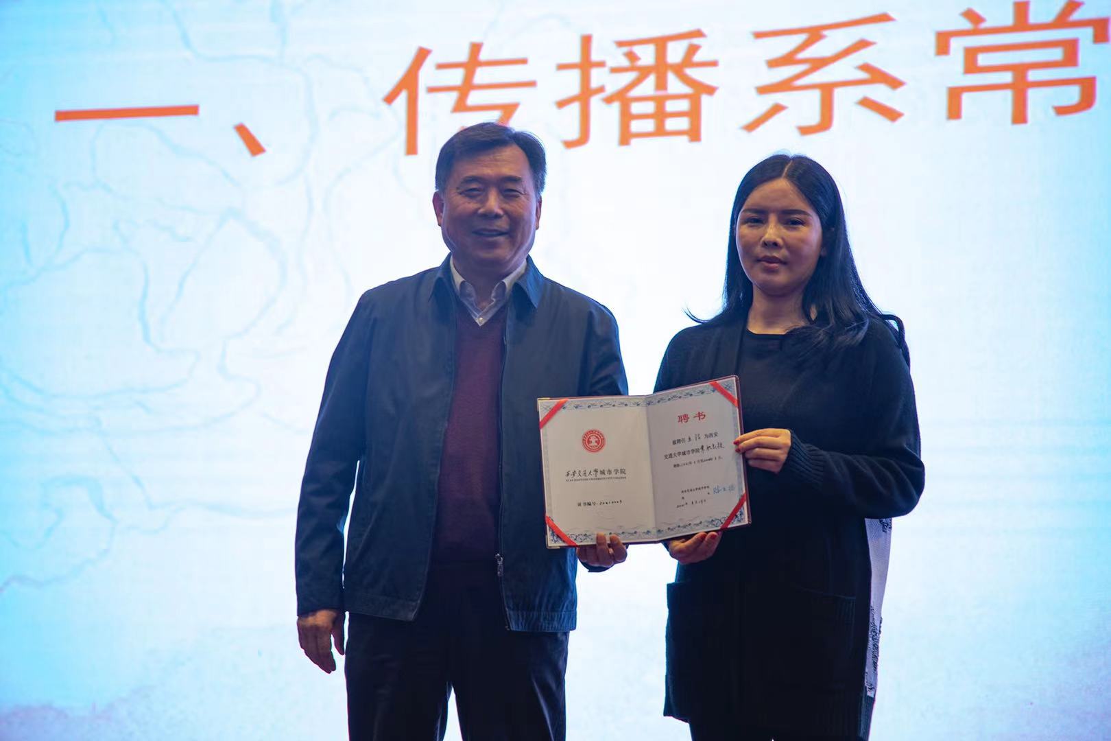 3月25日下午,威尼斯7798cc传播系于教二报告厅举办王洁兼职教授聘任仪式暨人文大视野系列讲座。学院院长陈光德、人民日报陕西分社社长王乐文、陕西省青年作协副主席王洁、传播系常务副主任刘强、传播系全体教师及网媒专业2019级与2020级全体学生参会。本次会议由刘强常务副主任主持。
