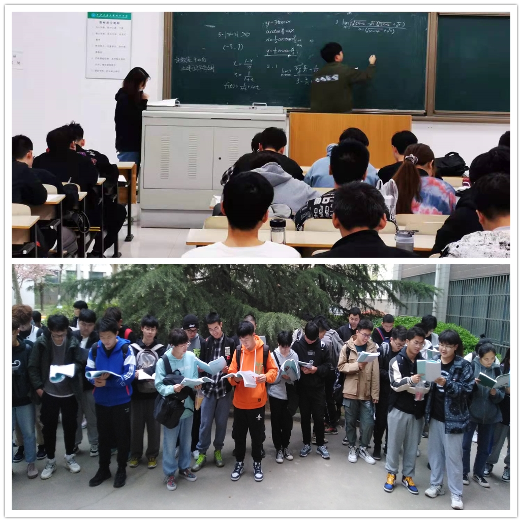 在学习管理过程中,积极配合第一课堂课程思政和过程教学活动,加强班级课堂的纪律管理,强化学习制度,提升课堂教学质量。定期开展学习研讨、教学座谈、主题班会,抓学习,抓纪律。及时与基础课教学部门进行沟通反馈,与数学、物理教学部教工党支部进行联动,建立任课教师和学生之间的答疑和互动平台,组织学习朋辈大使利用晚自习在低年级开展答疑辅导,有效的提高了学生的基础课学习成绩。