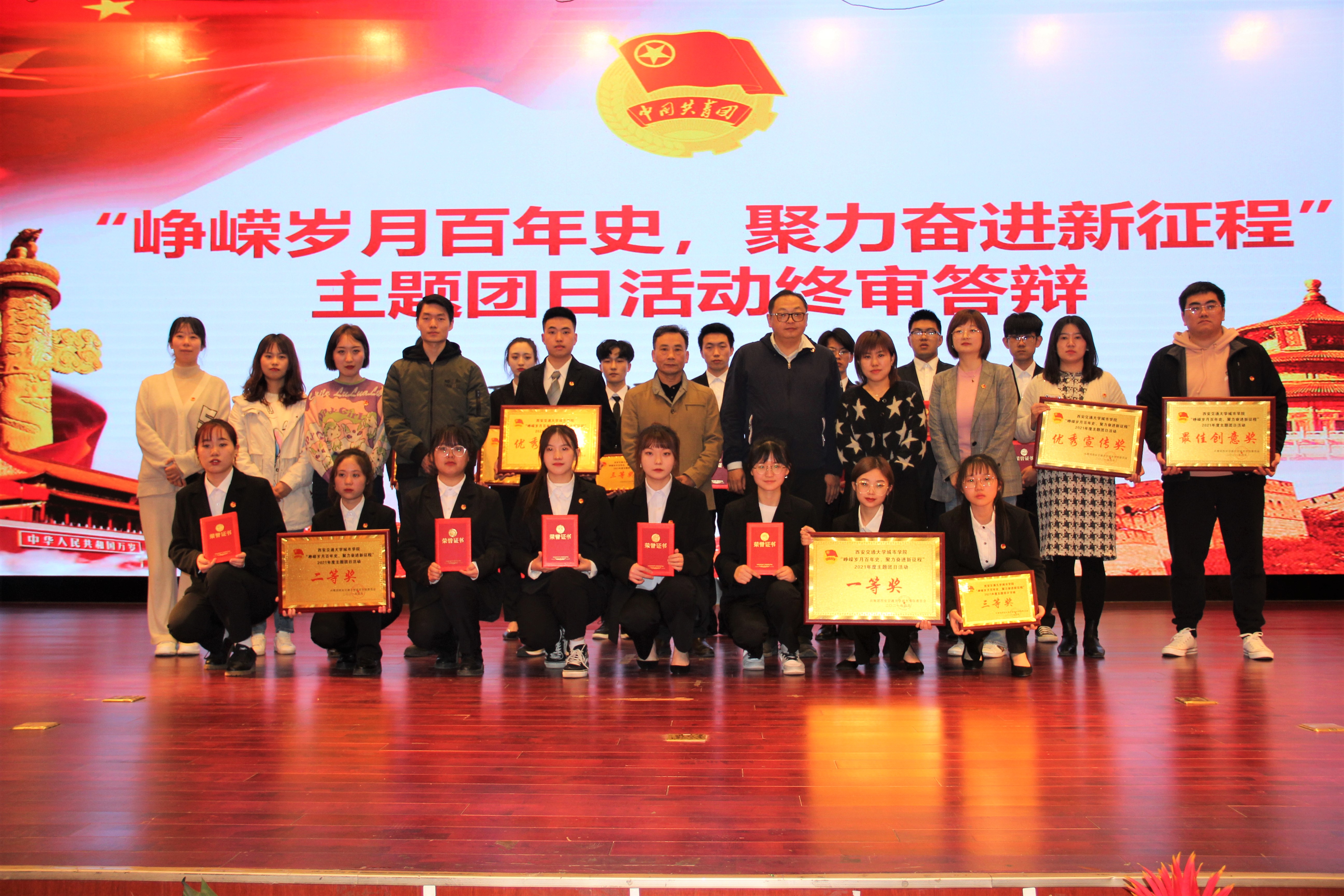 为了持续深入爱国主义教育,落实习近平总书记关于党史、新中国史、改革开放史、社会主义发展史的重要讲话和指示精神,学院团委于4月15日在教二报告厅举行了“峥嵘岁月百年史,聚力奋进新征程”主题团日活动终审答辩暨表彰大会。出席本次大会的领导有学院党委书记张爱萍、学生服务中心主任张学堂,担任本次终审答辩评委的有学生服务中心副主任马瑞、机械系学生工作负责人吴昊翔、经济系学生工作负责人廉宇婷、护理系学生工作负责人叶超、计算机系学生工作负责人刘敏涛、电信系学生工作负责人王姣、传播系学生工作负责人杨耀聪、外语系学生工作负责人关天娇、管理系辅导员李璐。此外学生服务中心就业主管王丽丽、学院团委全体老师、各系团工委书记们以及优秀团支部的学生代表们参加了本次大会。