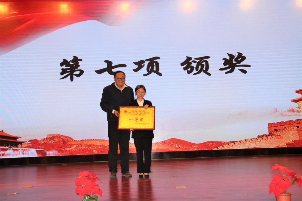 紧张激烈的答辩环节结束后,由管理系团工委和传播系团工委进行风采展示。管理系黎杨从团日培训启动、团工委推进引领、各支部组织状况、新媒体宣传四个方面展开讲述了本次团日活动,其中读书分享会、知识竞赛、携手兄弟系文理结合共同推进的引领措施值得各系学习,宣传方式不乏创新感。陈欣代表传播系团工委进行发言,她从系团工委概况、活动开展、风采展示、成果总结四个方面进行了演讲,令人深刻的是其在多个媒体平台的宣传都取得了优异的成绩,其中在扬州生活网的阅读量更是突破了一万人次。随后主持人宣读了本次答辩评审的最终结果,向获奖支部颁发了荣誉证书。