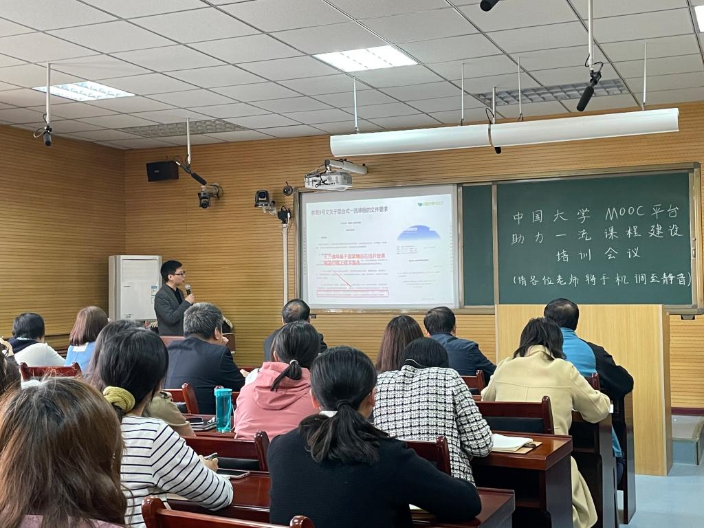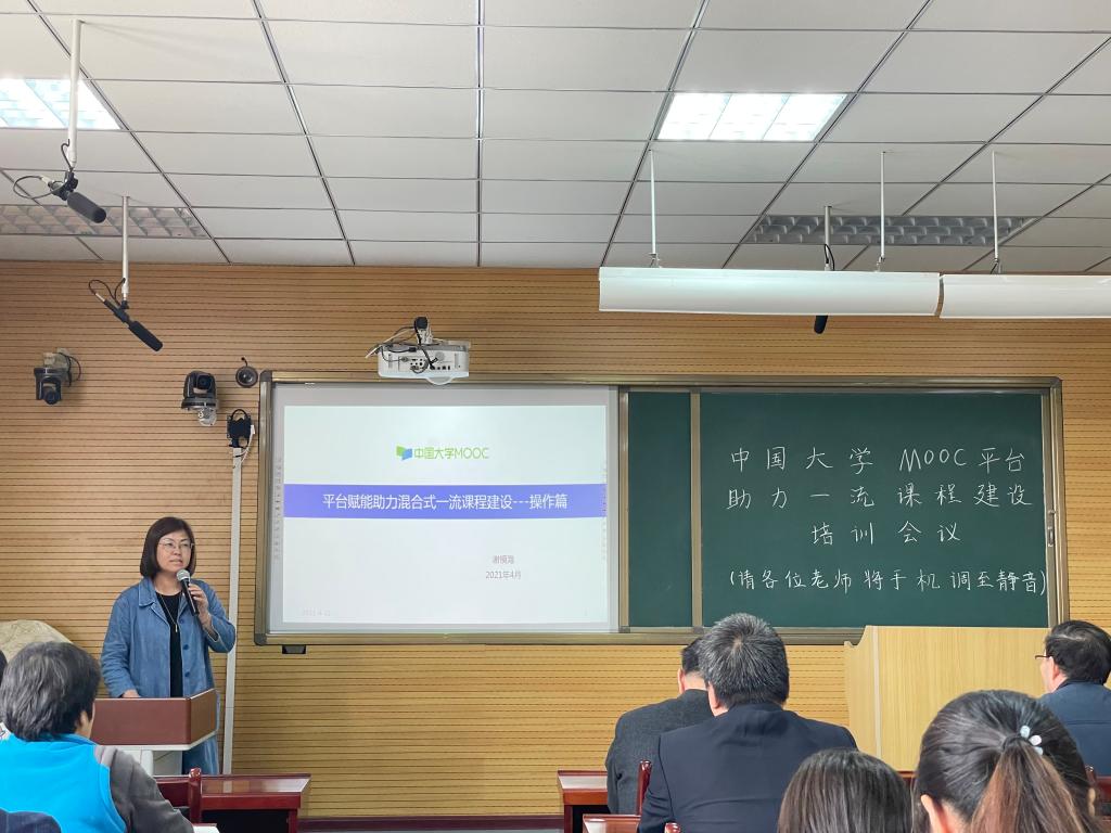 中国大学慕课谢模海首先介绍了中国大学MOOC平台的发展历程和国家级一流课程的评选过程和相关规定,详细分析了线上线下混合式课程申报的要求,利用北京理工大学徐厚宝教授和兰州交通大学李敏之教授成功申报国家级混合式一流课程的案例,从前期准备、教学设计、中期实施、后期数据统计等方面进行了具体讲解。最后,各专业、课程负责人从课程设计、学生互动答疑、平台使用等方面进行了互动。