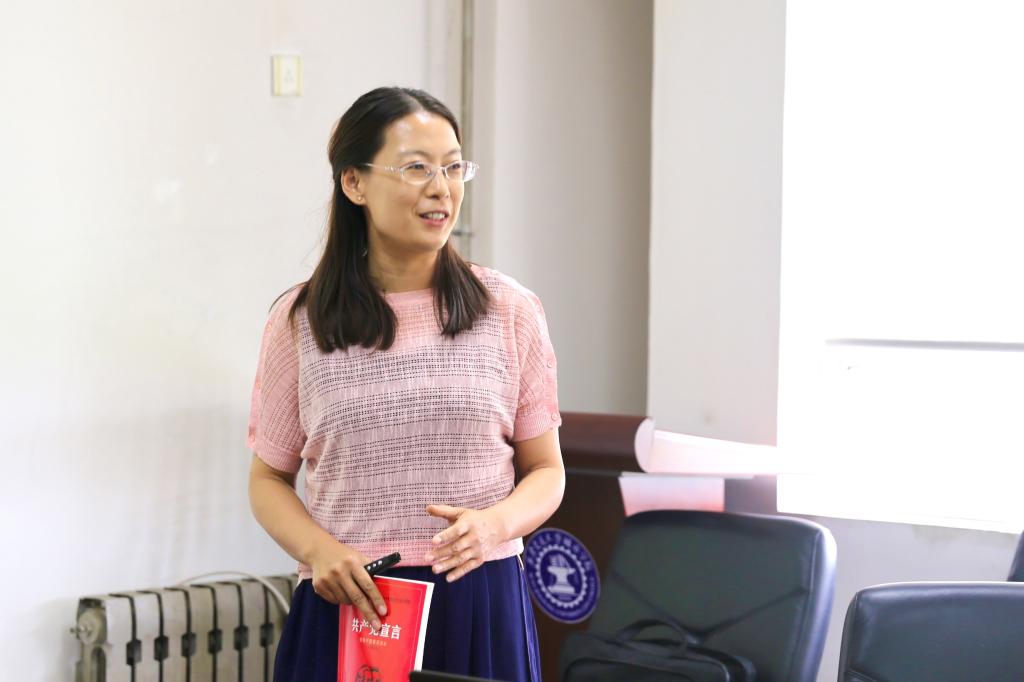 思政教学部教师李茂宁分享了经典著作《共产党宣言》,这是一本第一次全面阐述科学社会主义原理的伟大著作,在今天依然具有巨大的真理力量和时代价值。李老师指出,本书从1872年至1893年先后共有七个序言,这些序言将文本理论与当时的社会实际相结合,每一遍阅读都会带给我们新的启发,《宣言》的正文更是一个内容丰富的理论宝库,值得我们反复学习、深入研究,不断从中汲取思想营养。