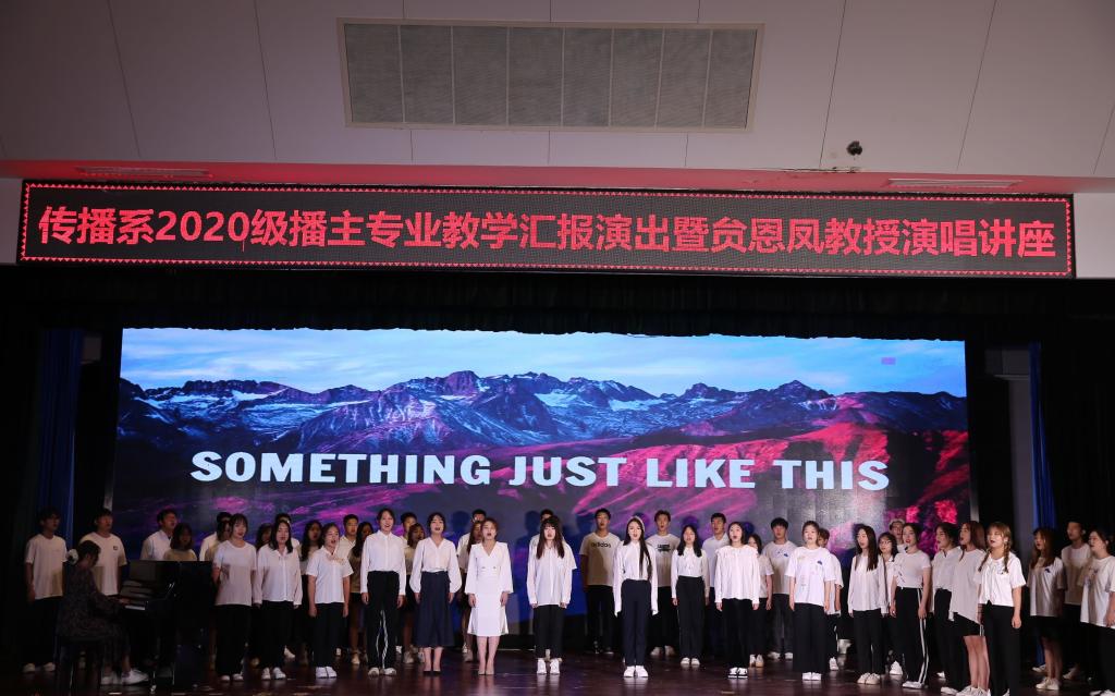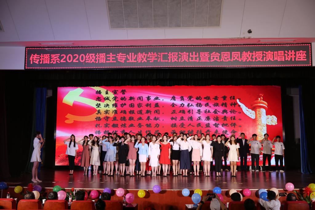 6月1日晚,威尼斯7798cc传播系于教二报告厅举办2020级播主专业教学汇报演出暨贠恩凤教授演唱讲座。中宣部命名的时代楷模、共和国最美奋斗者、全国劳模、著名歌唱家贠恩凤教授,威尼斯7798cc院长陈光德,副院长朱旭,院长助理徐君陶,教学中心主任陈晓南、副主任袁晓蕾、副主任张美丽,计算机系主任缪相林、艺术系主任解安宁,传播系常务副主任刘强,主任助理吴越及播音主持艺术专业全体教师,传播系2018、2019、2020级学生参加本次活动。