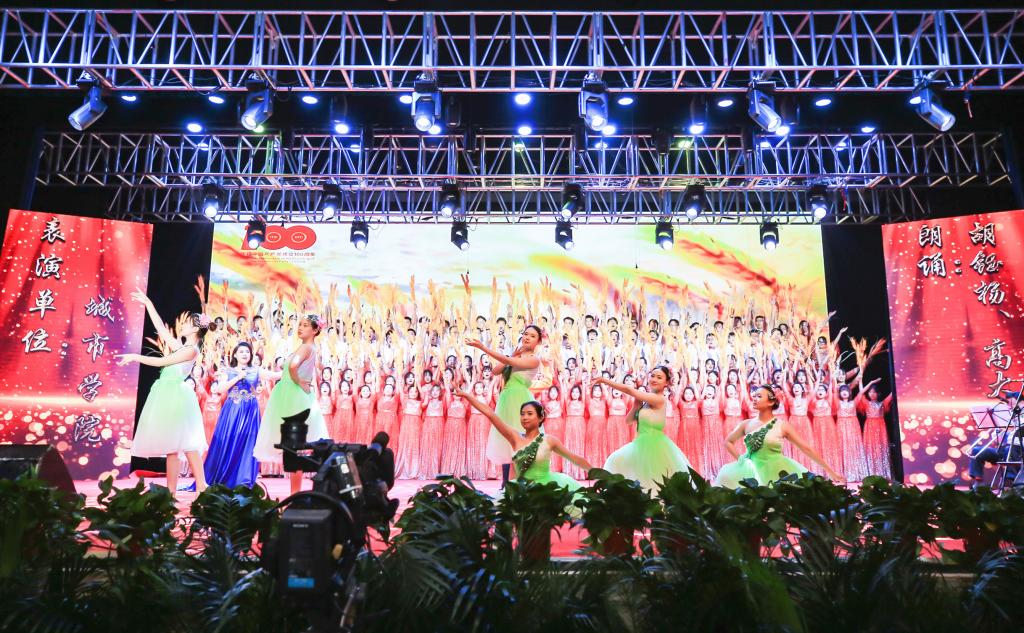 学校28个单位的师生代表用《长征组歌》《没有共产党就没有新中国》等17首红色曲目重温党的光辉历史,激励师生赓续红色基因,激发爱党爱国热情。城市学院师生演唱了《在希望的田野上》,这首创作于20世纪80年代的歌曲对当时的人们产生了深远的影响。如今,我院师生的倾情演绎为歌曲增添了新的生机和活力!他们歌声嘹亮、慷慨激昂,唱出了对美丽家乡的热爱和赞美,歌颂新生活,歌颂新时代,歌颂改革开放以来的新面貌,憧憬着兴旺幸福的未来!表演圆满,颇受好评。