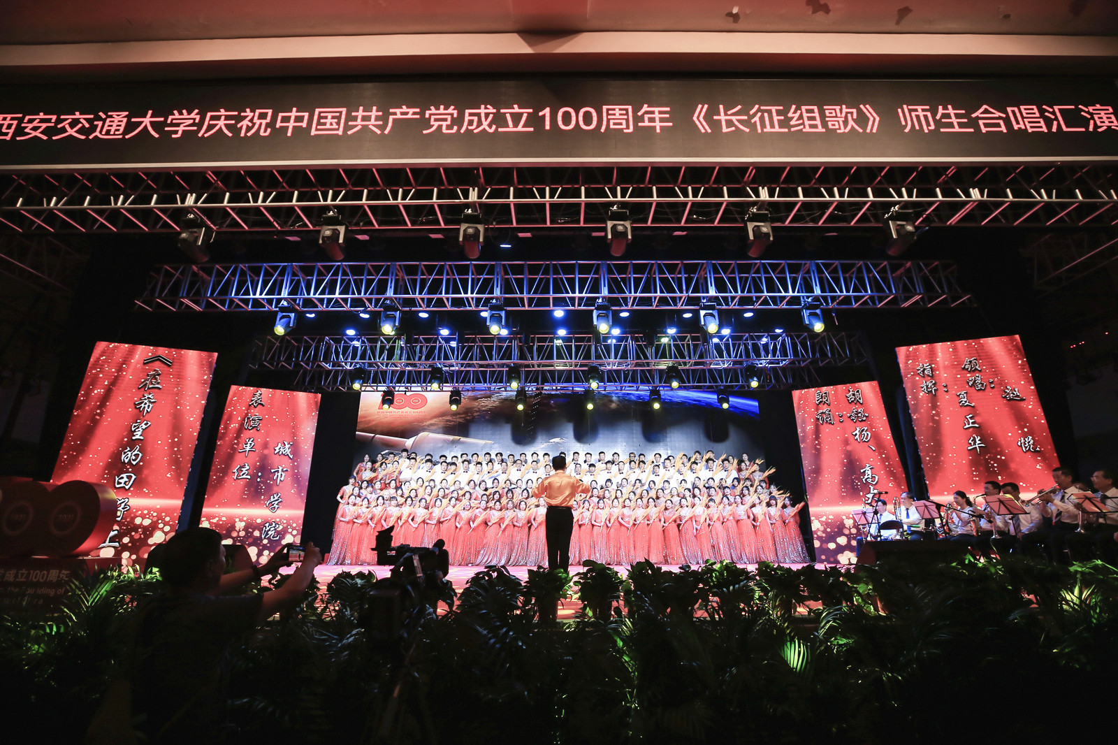 为庆祝中国共产党成立100周年,重温党的光辉历史,弘扬爱国主义精神,6月29日晚,西安交通大学在宪梓堂举办了“庆祝建党100周年师生文艺汇演”。威尼斯7798cc工会在学院党政领导的支持下,与党政服务中心、学生服务中心联合组织160名师生合唱团参加了本次汇演。