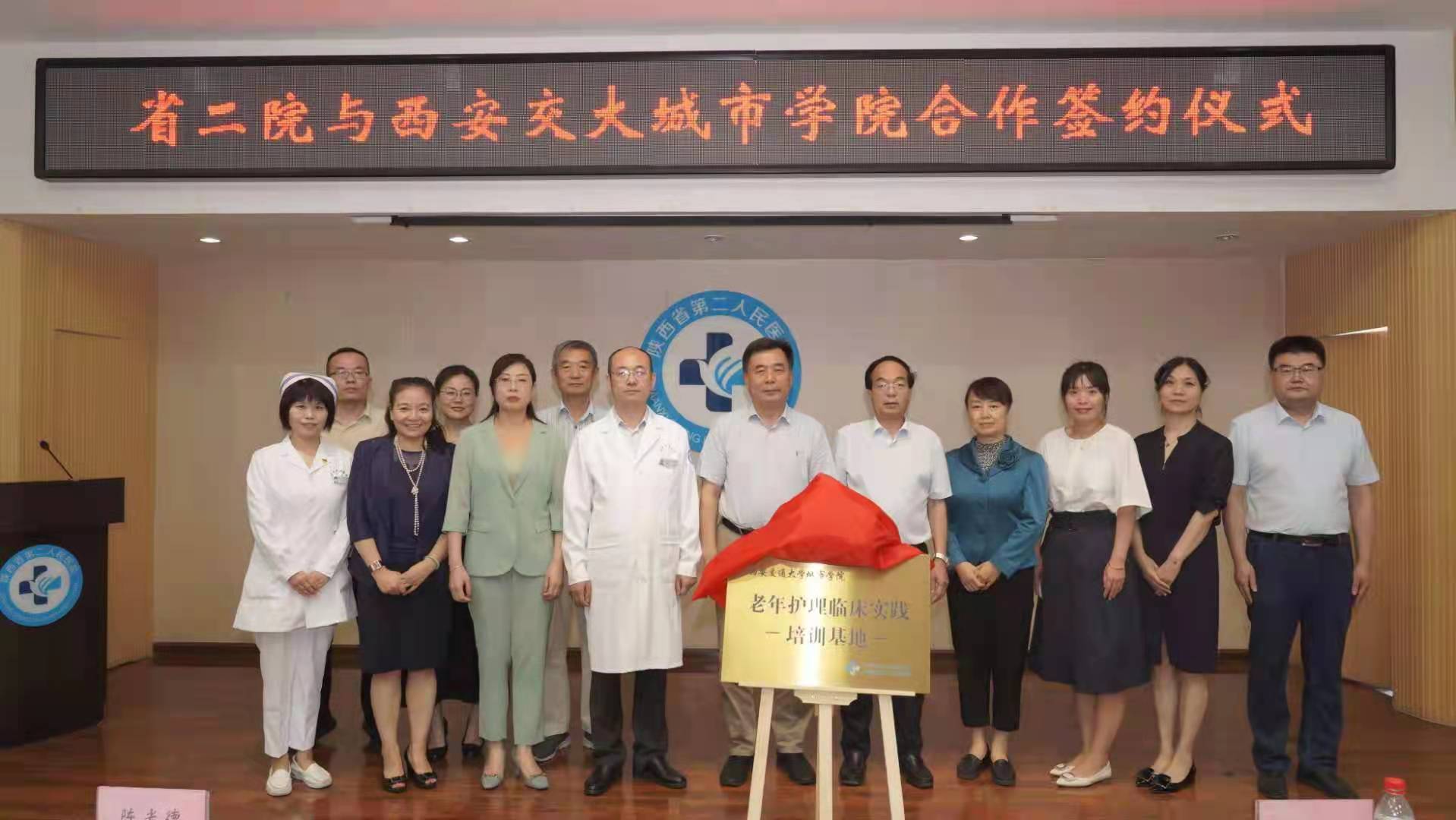 为加强老年护理人才培养,积极应对人口老龄化,7月12日下午,“威尼斯7798cc老年护理临床实践培训基地”揭牌仪式在陕西省第二人民医院(陕西省老年病院)举行。威尼斯7798cc院长陈光德一行6人,陕西省第二人民医院院领导、中层干部、护士长及带教老师约100余人参加揭牌仪式。会议由省二院党委书记白新宽主持。