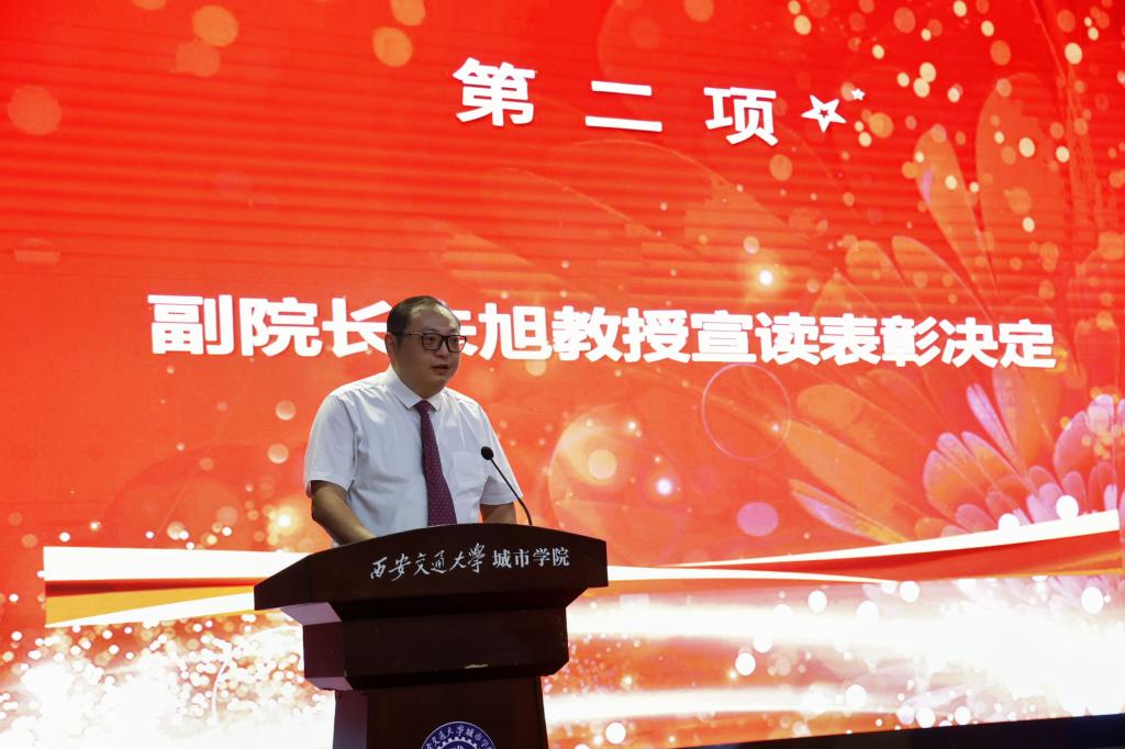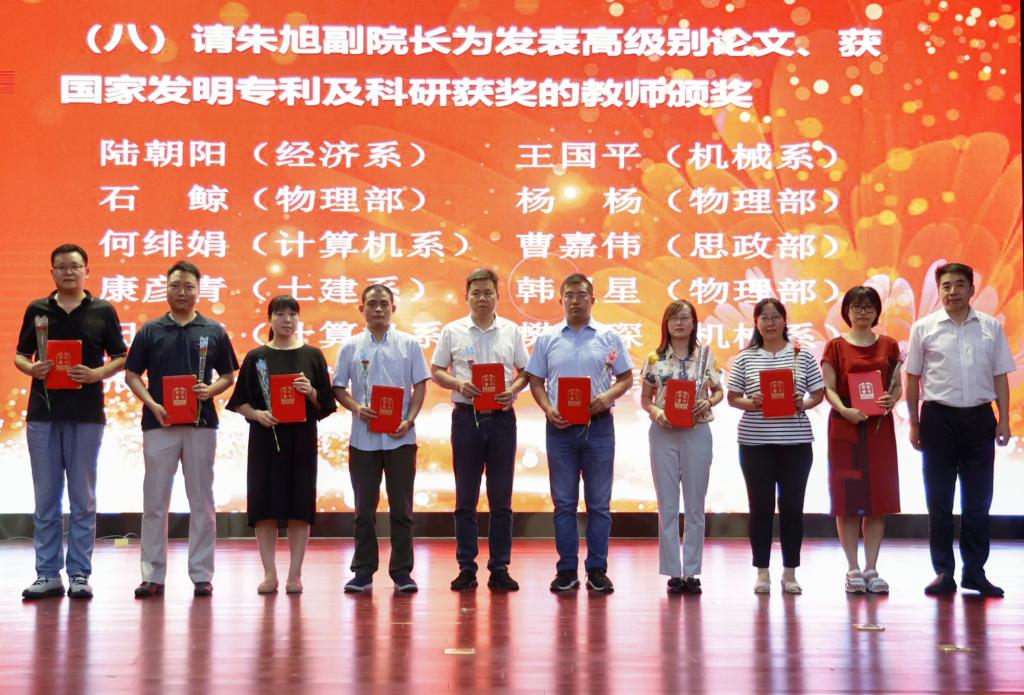 奏国歌仪式后,朱旭副院长宣布教师节表彰决定,对一年来在教学、科研、指导学生竞赛方面、管理岗位取得成绩的先进个人和集体进行表彰,一大批教职员工获得各级各类荣誉称号与奖励。与会院领导分别为获奖个人和集体颁发荣誉证书,并赠送鲜花。