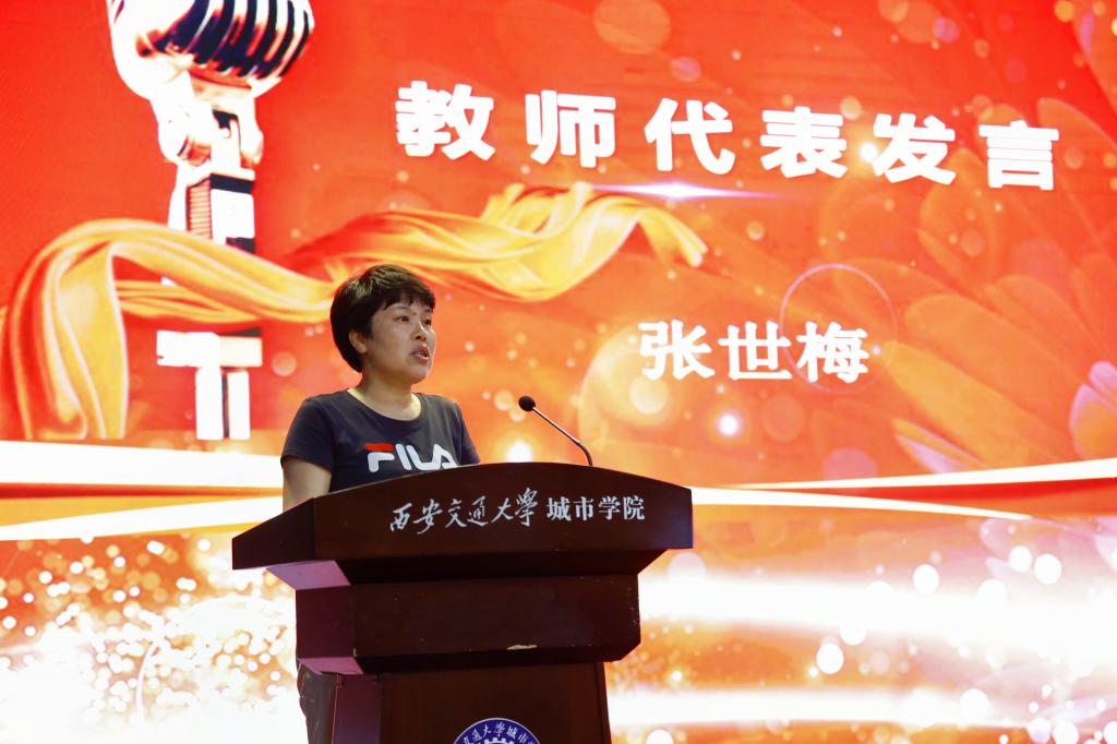 教师代表张世梅在发言中指出,教学是一门艺术,师者,需要拥有父母心,要将严和爱结合,要有对教育深深的热爱。要通过不断学习、积极思考、努力发展,探究教育新领域及新环境。她通过来到威尼斯7798cc十六载的经历,表达了对威尼斯7798cc的感恩与感激之情。