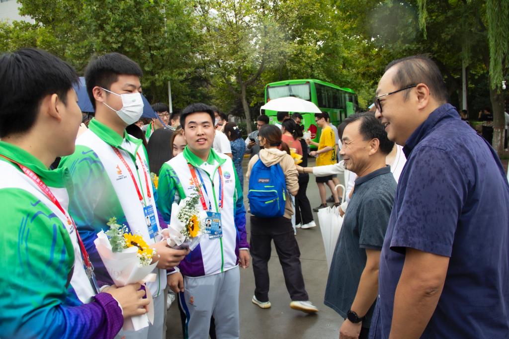 9月16日,经过21天的辛苦付出,他们全员平安返校。学院党委书记张爱萍、学生服务中心主任张学堂、团委书记茹静以及志愿者所在班级辅导员、班级同学、舍友代表在喷泉广场为他们举行了欢迎仪式。