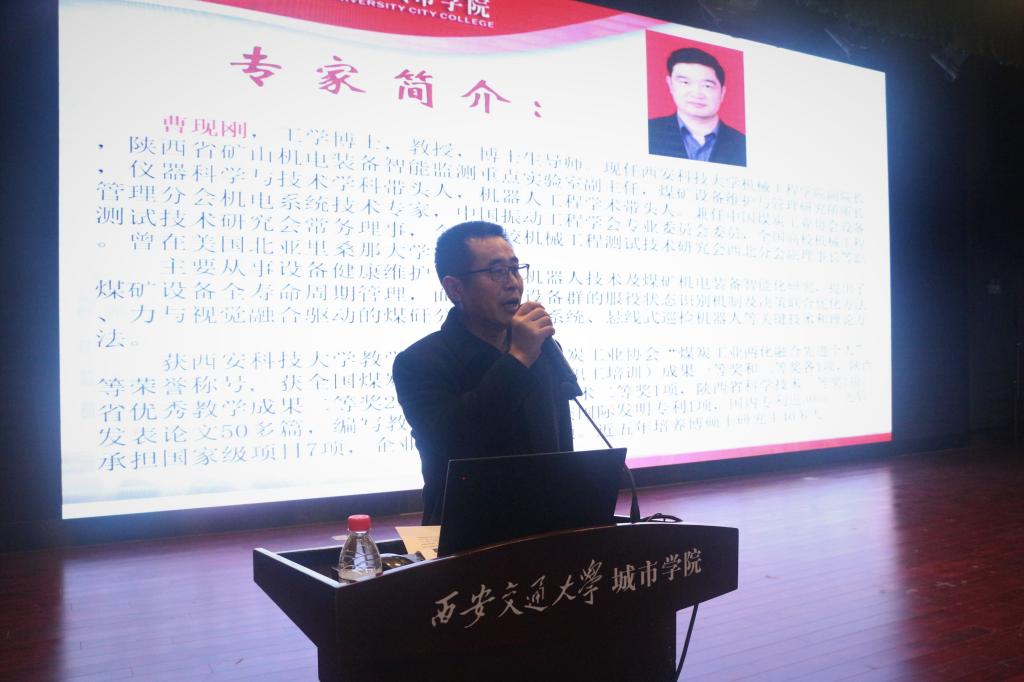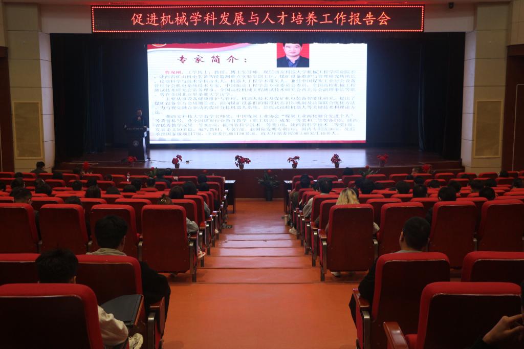 10月15日下午,机械工程系在教二楼报告厅举办促进机械学科发展与人才培养工作报告会,邀请西安科技大学机械工程学院副院长、机器人工程学术带头人、陕西省矿山机电装备智能监测重点实验室副主任、煤矿设备维护与管理研究所所长曹现刚教授来学院做学术报告和硕士研究生招生讲座。学院领导岳华海副院长出席报告会,出席报告会的还有科技服务中心主任王小青、教学中心主任助理王国平,机械工程系全体教工、机械系大三和大四全体学生以及其他年级学生代表参加了讲座。报告会由机械系主任刘吉轩教授主持。