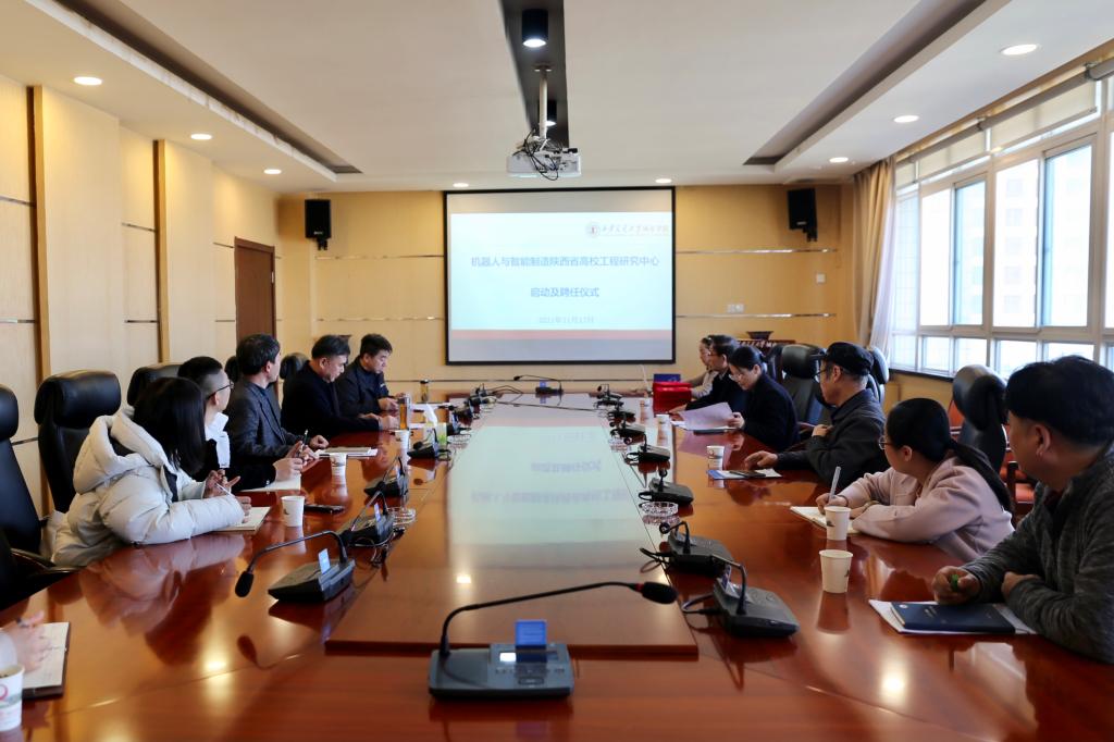 朱旭副院长宣读了陕西省教育厅《公布陕西省高校工程研究中心立项建设名单的通知》和学院《关于启动机器人与智能制造陕西省高校工程研究中心建设的通知》,及学院《关于姜歌东等同志职务聘任的通知》、《关于成立工程研究中心技术委员会的通知》。