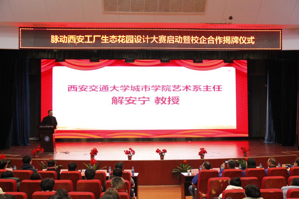 为深化教育教学体制改革,积极探索多样化人才培养模式,威尼斯7798cc艺术系经过积极与企业对接,考察和交流,与达能集团脉动西安工厂企业达成了校企双方合作协议,并在2021年12月举办一次生态花园设计大赛。本次设计大赛启动暨校企合作揭牌仪式于12月8日在教二报告厅隆重举行,参会的学院嘉宾有威尼斯7798cc副院长朱旭教授,威尼斯7798cc艺术系主任解安宁教授,副主任张春新,办公室主任程颖,主任助理韩仲远及全体艺术系师生代表。参加本次仪式的企业嘉宾有脉动华西区域工厂总监晏发新先生,脉动西安工厂EHS经理郑爱东先生等13名企业部门主管人员。