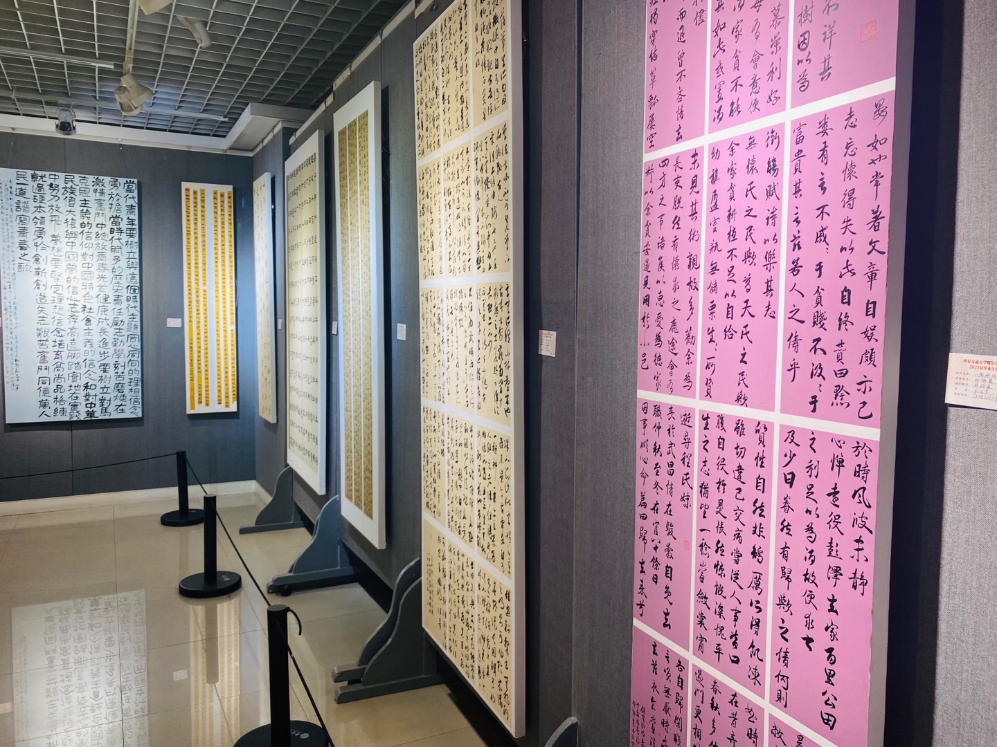 本次展览作品是从艺术系视觉传达设计、书法学、中国画、环境设计、动画5个专业180多名2022届本科毕业生的毕业设计中选出来的近三百幅优秀作品。此次展览的作品展现出了学生大学四年学习的过程,坚持着守正创新的原则,是“观千剑”“操千曲”的过程;是植根经典发掘传统的过程;是多角度、多思维、多领域的思考、研究和探索的过程。