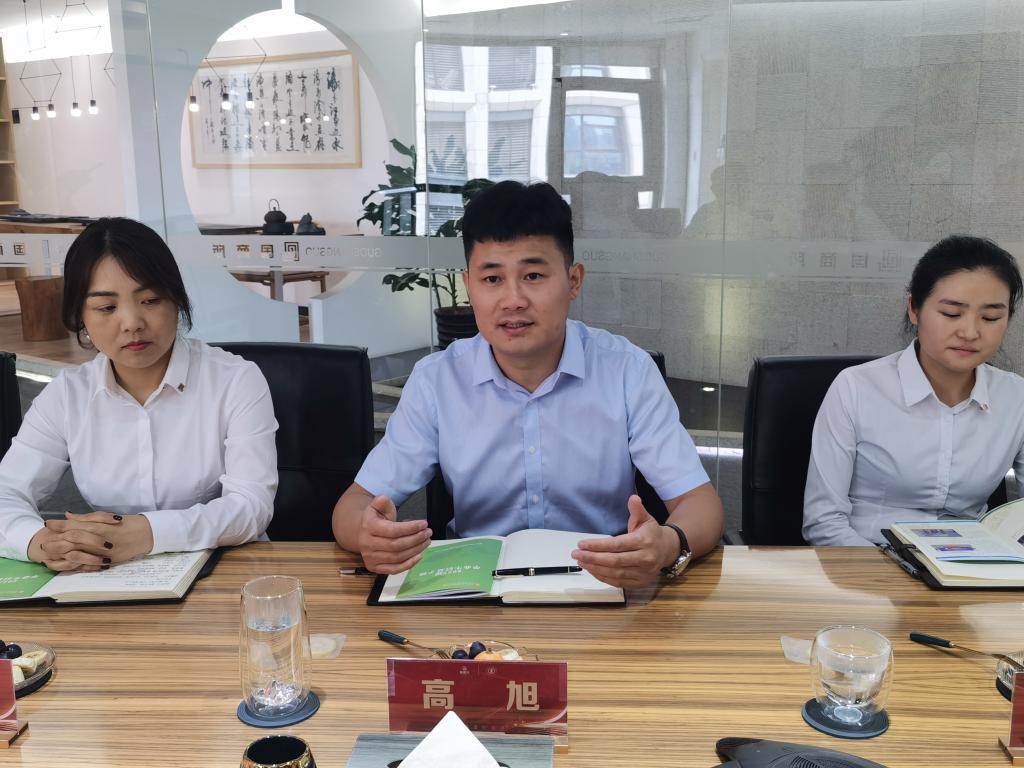 座谈会伊始,国商所董事长高旭代表公司对朱旭副院长一行的到访表示热烈欢迎。他从企业发展、优势领域、人才培养和需求、合作意向等方面对国商所进行介绍。