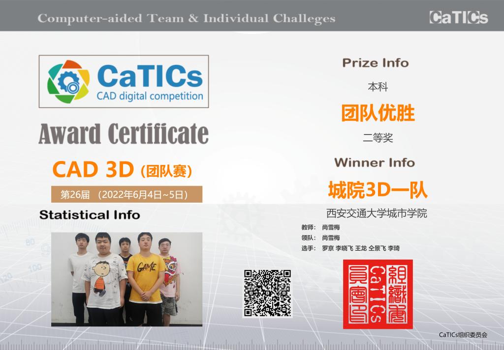据悉,CaTICs(Computer-aided Team & Individual Challenges)是CAD领域的全数字化竞赛,该竞赛全称是全国大学生团队技能赛,由北京菁华锐航科技有限公司承办,是基于网络的、团队之间和选手个人间对抗的、全数字化的广域网系统比赛平台。本次比赛共吸引了全国100多所高校参加。
