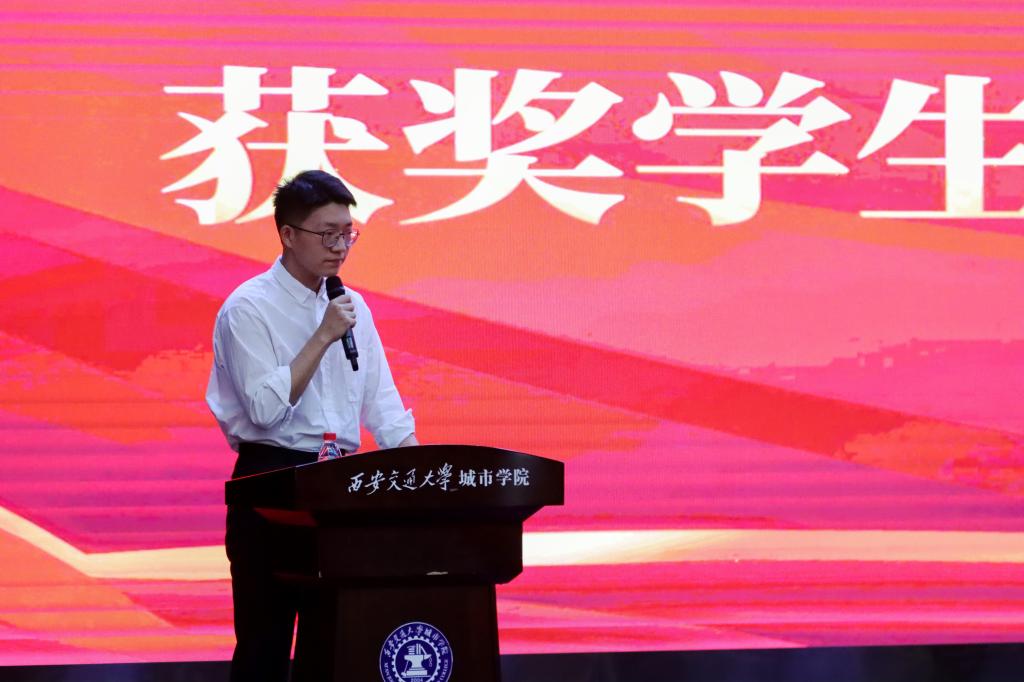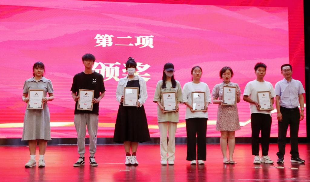 随后,与会领导分别为获奖作品颁奖。颁奖仪式后,获奖教师代表艺术系杨铭、获奖学生代表机械系机制181班杨天星分别进行了发言。
