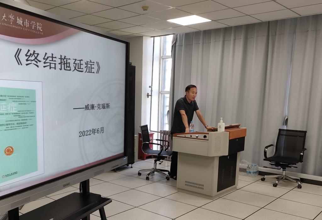 学生服务中心张福全推荐书目是《终结拖延症》。本书是美国著名心理治疗专家威廉·克瑙斯30年的研究著作,它为读者提供了适合实际操作的流程和练习,帮助解决拖延症问题。张老师介绍了书中关于拖延症的概念及分类、如何应对拖延症以及终结拖延症五步法等内容,分享了学习体会:一是树立信心,保持好的心态;二是把困难的任务进行分解,逐个完成;三是不要做计划的巨人,行动的矮子,任何一件事情计划再好,都不如马上去做。