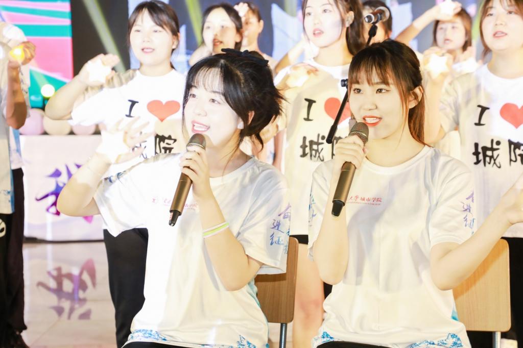 一支热情洋溢、活力四射的爵士舞《少年!敢》为歌会拉开序幕。一首首各具特色、脍炙人口的歌曲《我乘着风飞过来》《我喜欢》《我的未来式》,诉说了城院学子初入校园的欣喜和对未来校园生活的期望。伴随着《致青春》《渔光曲》《爱的华尔兹》等舞曲青春的节拍和悠扬的琴声,舞蹈团及现场毕业生起立共舞,优美的舞姿、青春的笑脸,刻画出了城院生活最美的样子。