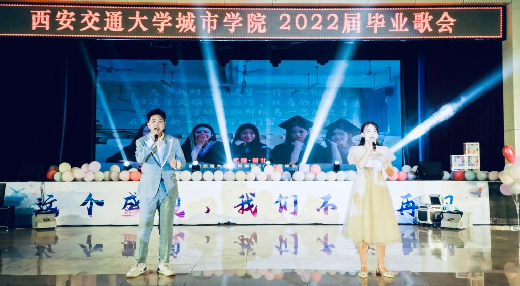 这个盛夏,我们不说再见。本次毕业歌会创新形式,表演节目从舞台走近观众,现场互动氛围满满。既有经典节目《城院新闻联播》带你进入四年青春时光隧道,又有独家改编歌曲《渭水河畔的追梦人》走心献唱,还有汇聚毕业生心意和记录四年成长的青春留言册,更有浪漫舞蹈《爱的华尔兹》邀全场共舞,并通过新媒体云平台实时直播,图片直播在线观看人数累计近30万人,为现场和线上2022届毕业生和家长朋友们带来一场属于这个夏天的视听盛宴。