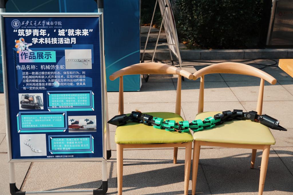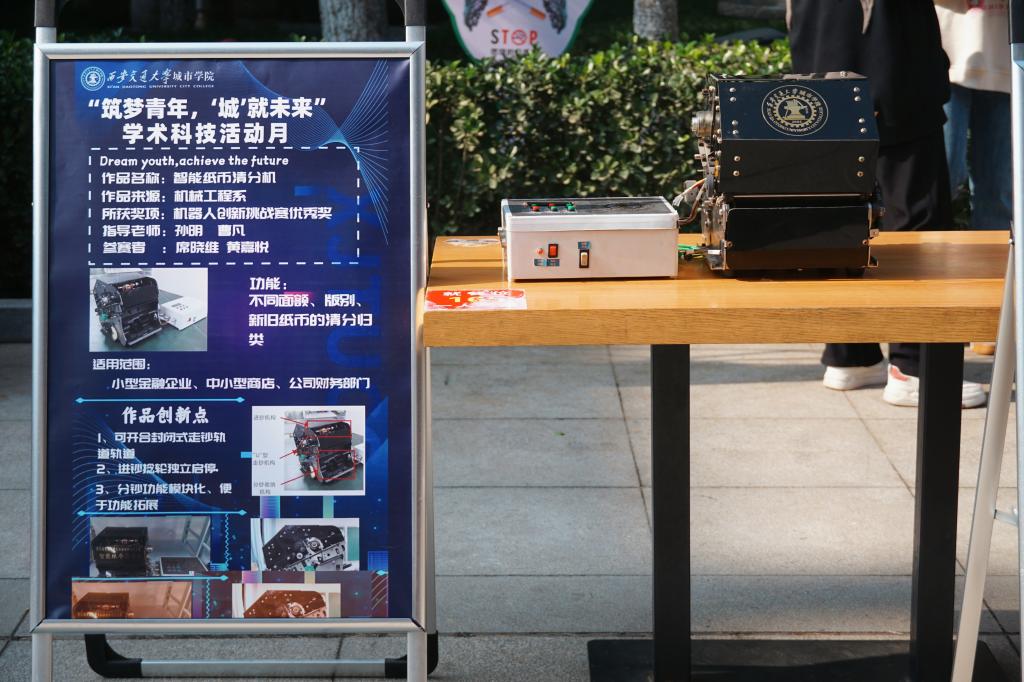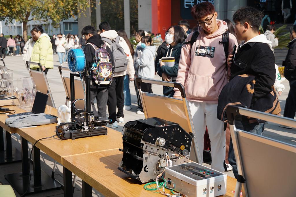 本次学术科技活动月中,仓储货物速取传送机构、智能纸币清分机、3D打印机、航空模型、全自动滚筒清分机、仿生蛇、智能快件分发装置、离心式硬币清分机、助力运输车等多项由我院教师指导,学生自我组装的智能化作品展现在大家面前。活动中,3D打印机、无人机、航模等作品现场进行展示,吸引了众多同学的驻足围观。每一个作品在展板的介绍下,同学们对科技作品有了进一步认识,对科技作品的工作原理和应用前景又有了更深入的了解,对各项科创类竞赛也充满了好奇。