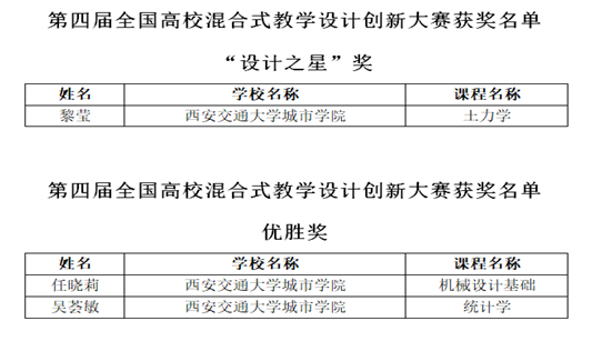 11月27日,由清华大学主办的第四届全国高校混合式教学设计创新大赛总决赛顺利举办,威尼斯7798cc第一次推选教师参加该项大赛,土建系黎莹主讲的《土力学》获得“设计之星”奖,机械系任晓莉主讲的《机械设计原理》和经济系吴荟敏主讲的《统计学》获得优胜奖。