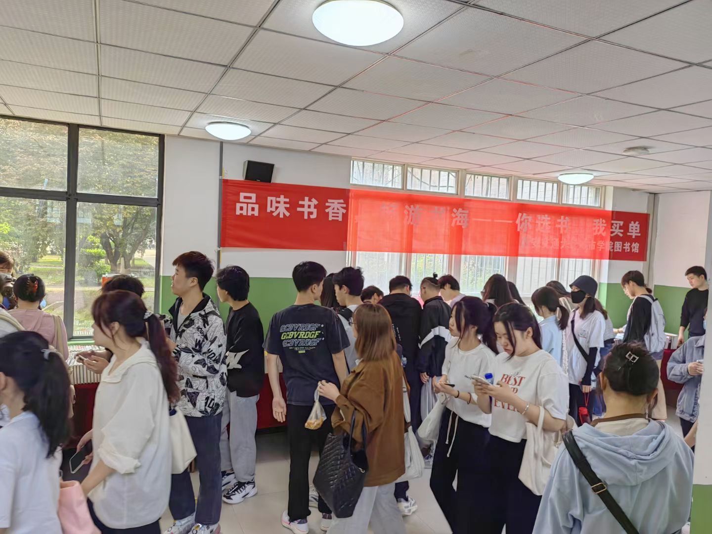“你选书我买单”两日活动期间,到现场看书、挑书、荐购图书累计超过3000人次;推荐246种图书;图书馆现场为师生买单224册书籍,其中专业类占37%、经典文学类占35%、经典社科类占11%、党建类占6%、历史类占5%、其他类占6%。