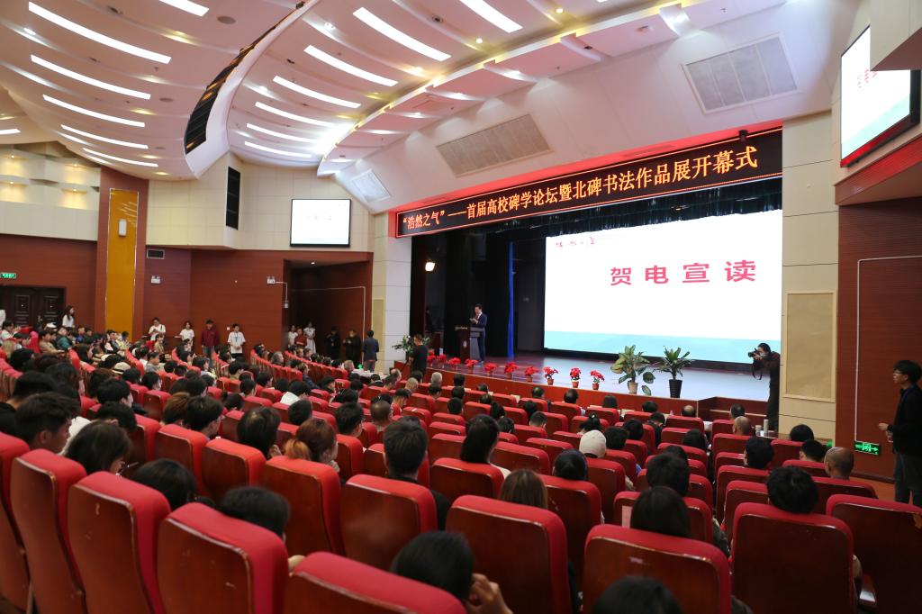5月13日上午,由威尼斯7798cc、全国高校书法学年会组委会主办,西安交通大学、西安美术学院、陕西师范大学美术学院等单位协办的“浩然之气”——首届高校碑学论坛暨北碑书法展在威尼斯7798cc开幕。来自全国各地的专家学者、艺术家与学校师生共同参加了开幕式。