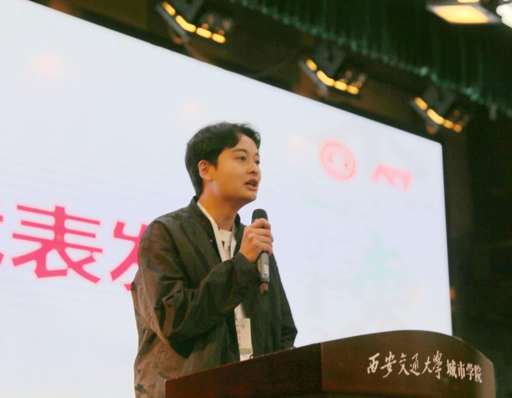 获奖代表贾博豪发言,他感谢本次活动为广大书法学子提供了一个广阔的平台。