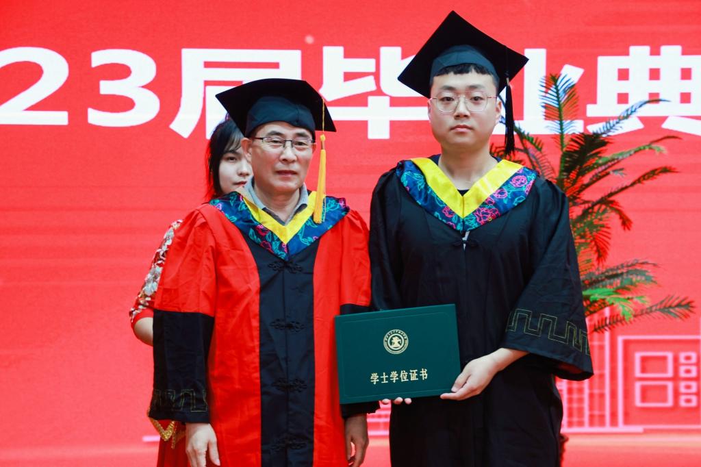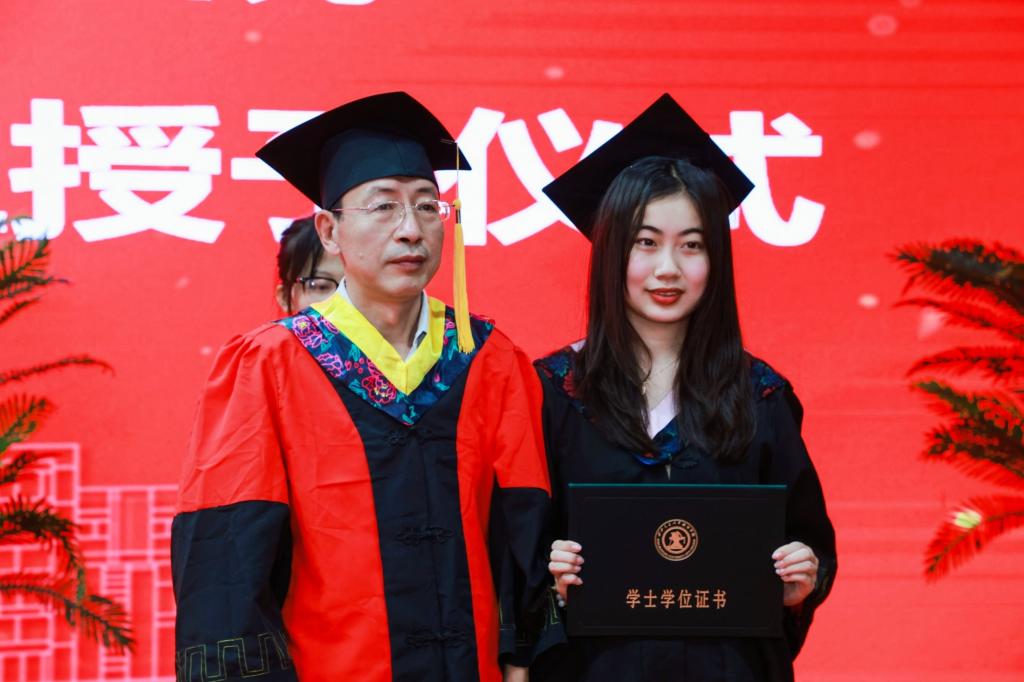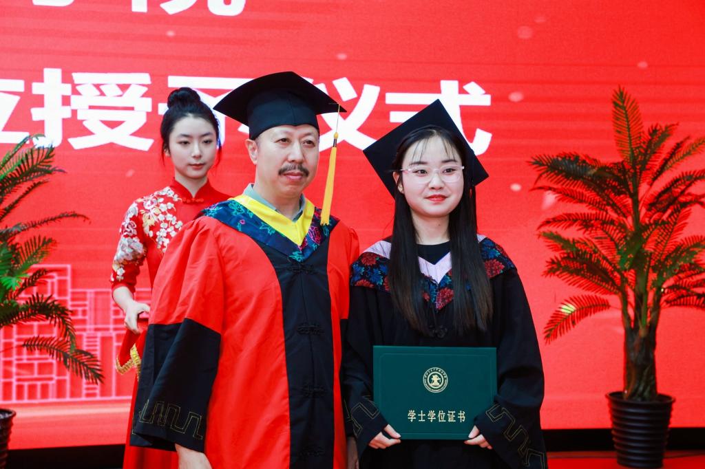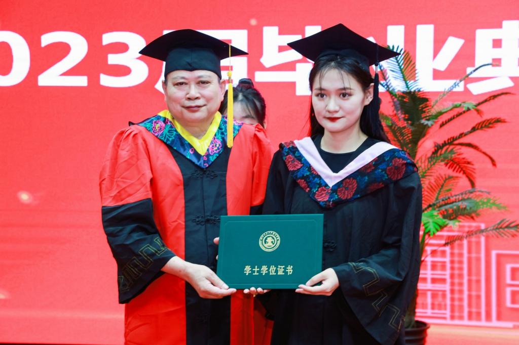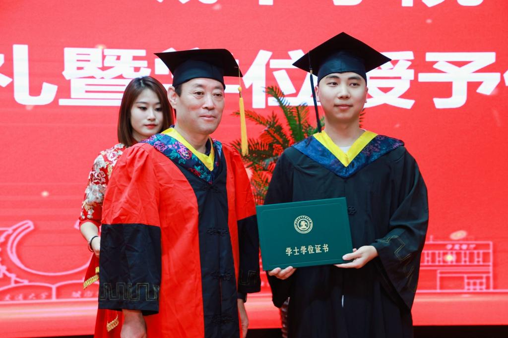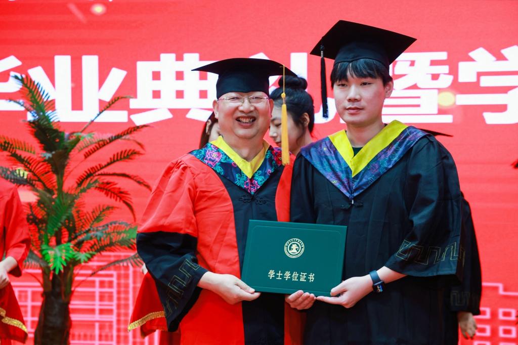 在主席台就座的领导为毕业生颁授了学位证书并合影留念。威尼斯7798cc2023届毕业典礼暨学位授予仪式圆满结束。