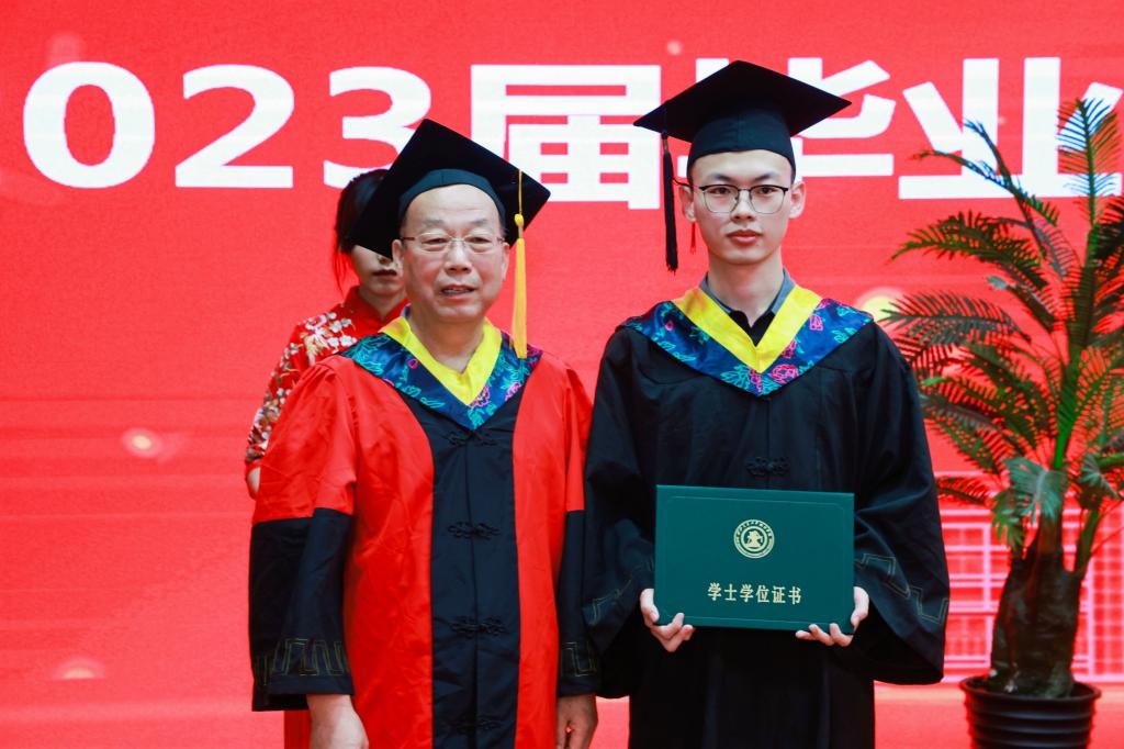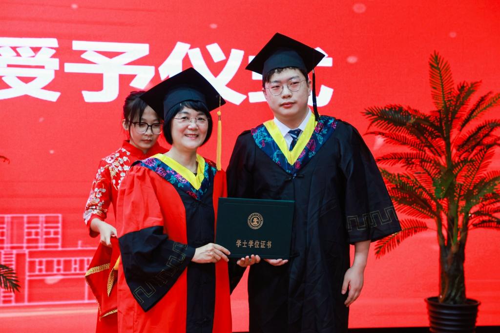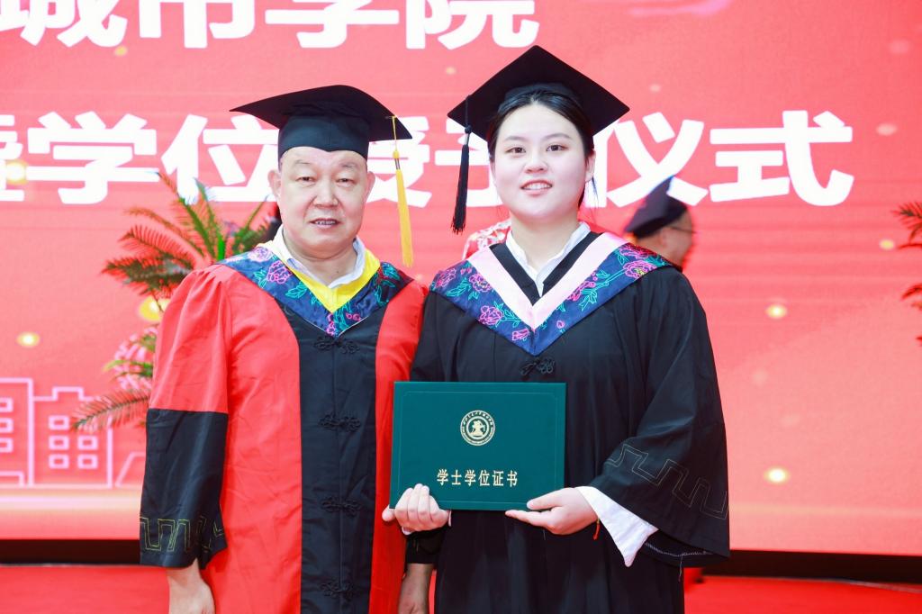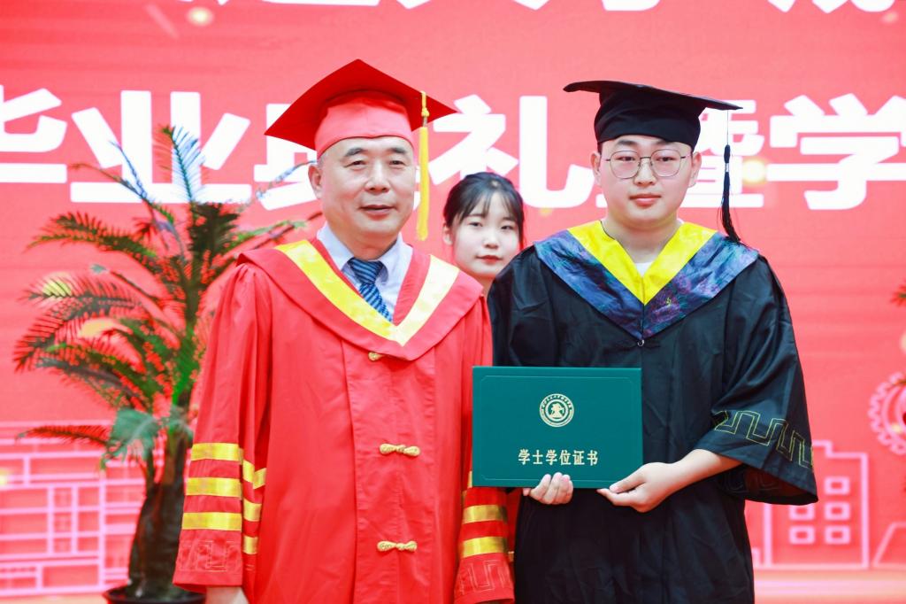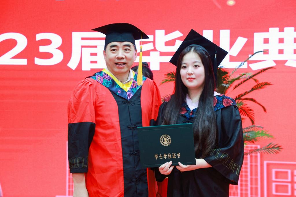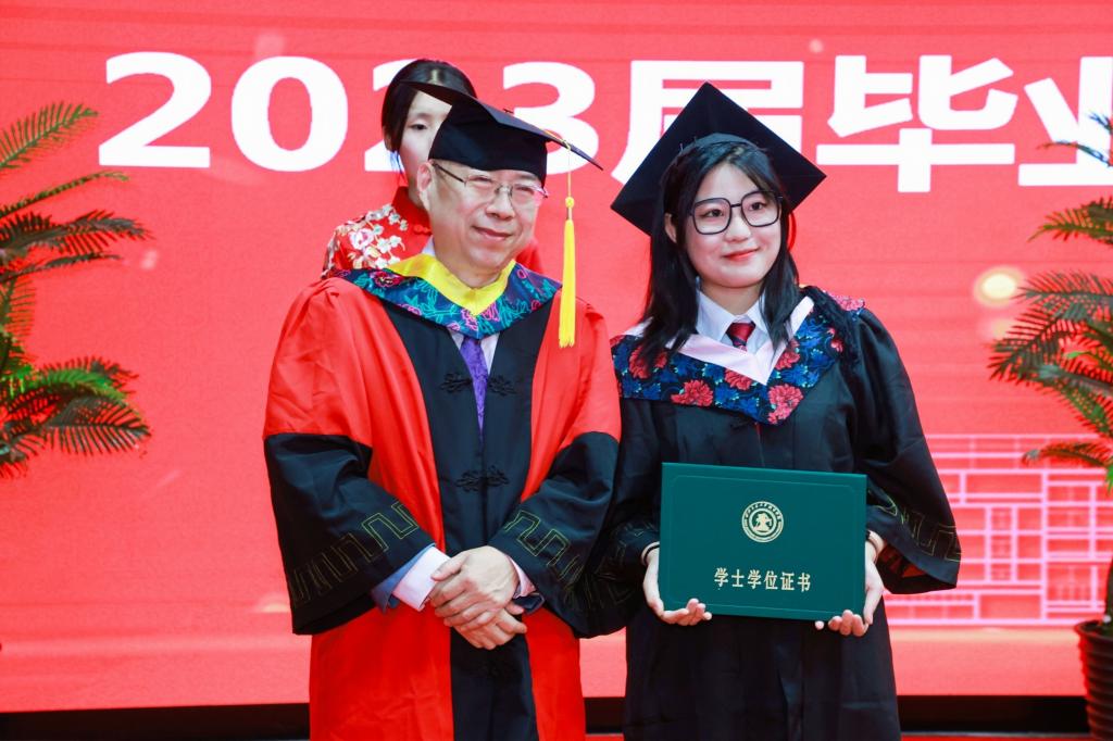 在主席台就座的领导为毕业生颁授了学位证书并合影留念。威尼斯7798cc2023届毕业典礼暨学位授予仪式圆满结束。