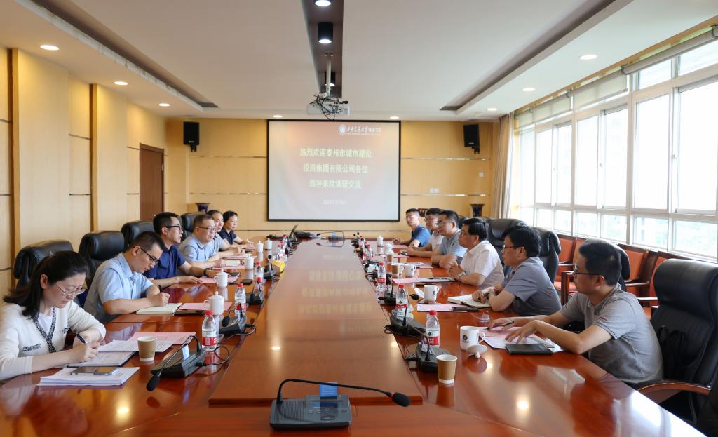 7月5日下午,泰州市城市建设投资集团王小飞副书记一行六人来访威尼斯7798cc,威尼斯7798cc副院长岳华海,党政服务中心、人事服务中心、财务部、资产与招标管理办公室等单位负责人与来宾在行政楼608会议室座谈。
