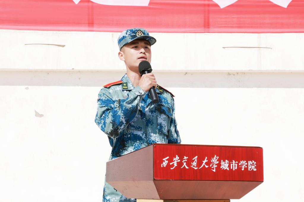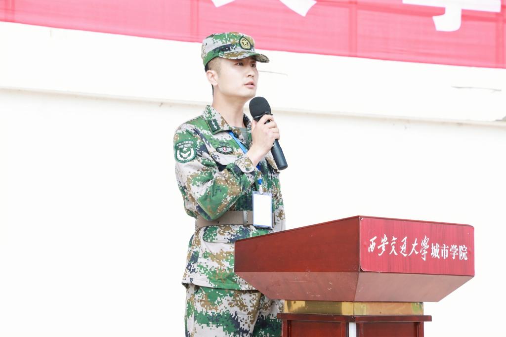 青春邂逅迷彩,热血铸就军魂,礼炮声响彻天际。伴随着国歌奏起,大会拉开了帷幕。朱旭副院长宣布学生军训团成立及营以上干部名单。学员代表贠萌昊同学代表全体军训学员进行发言。他坚定地说:“奋斗是青春最亮丽的底色,行动是青年最有效的磨砺。我们将牢牢把握军训这次机会,以饱满的热情和昂扬的斗志开启新学期新篇章。”教官代表王谦同志表示:“将以良好的军人形象、军人作风和军人姿态磨炼城院青年意志、坚强城院青年体魄,助力城院青年成长。”