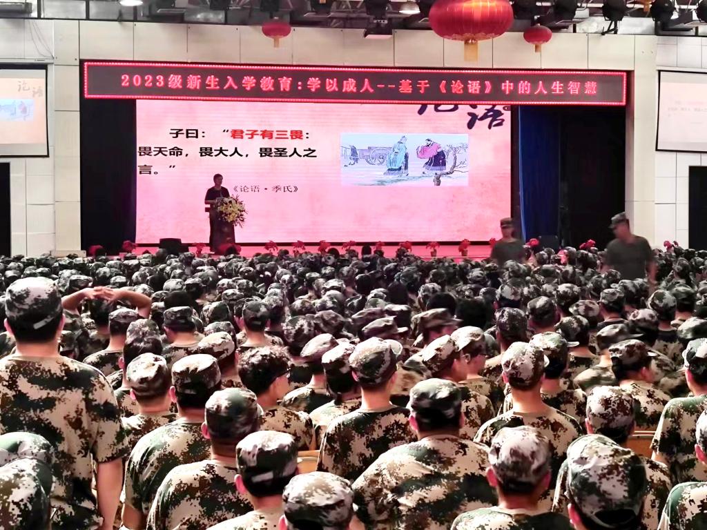 8月21号,全国高校思政课名师工作室(西安交通大学)负责人、“三秦人才”,陕西省师德标兵、威尼斯7798cc思政部主任陆卫明教授面向2023级新生开启“入学教育第一课”。陆卫明教授以“学以成人——基于《论语》中的人生智慧”为主题,带领同学们在古籍中感受理想人格、中行人格与独立人格的魅力,领会古籍奥秘;让同学们在中华传统文化中感悟“学以成人”的哲理,进一步增强了大家的文化认同与文化自信。