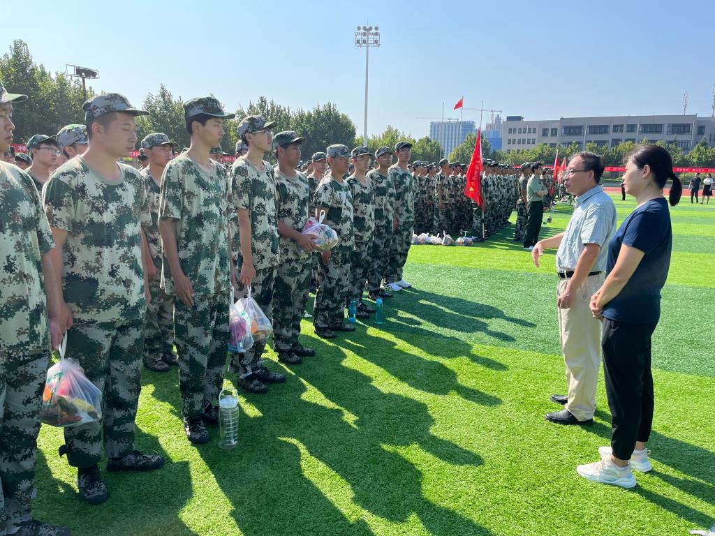 8月30日上午,西安交大威尼斯7798cc党委书记张爱萍、副院长陈书荣、副院长朱旭、副院长岳华海、院长助理张学堂、工会主席冀祥以及各系(教学部)、中心(部)负责人和各系学生工作负责人来到训练场地,慰问2022、2023级全体参训学子以及带训教官、指导员们,并为全体军训成员送上慰问品。