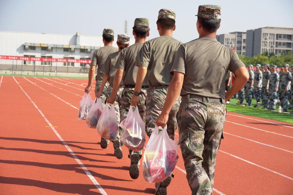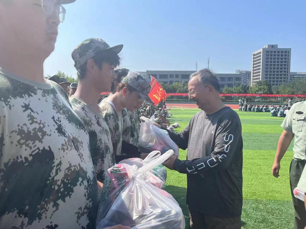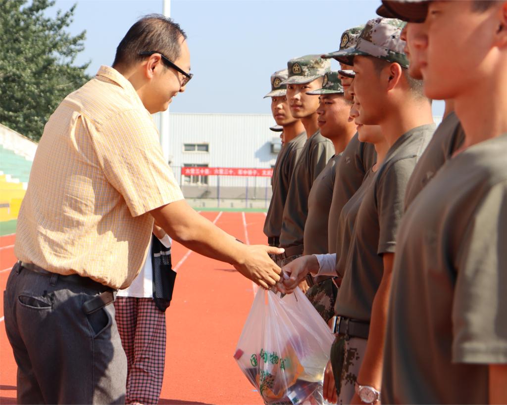 一阵阵掌声中,学院各级领导、老师为军训教官、指导员及参训同学发放慰问品。