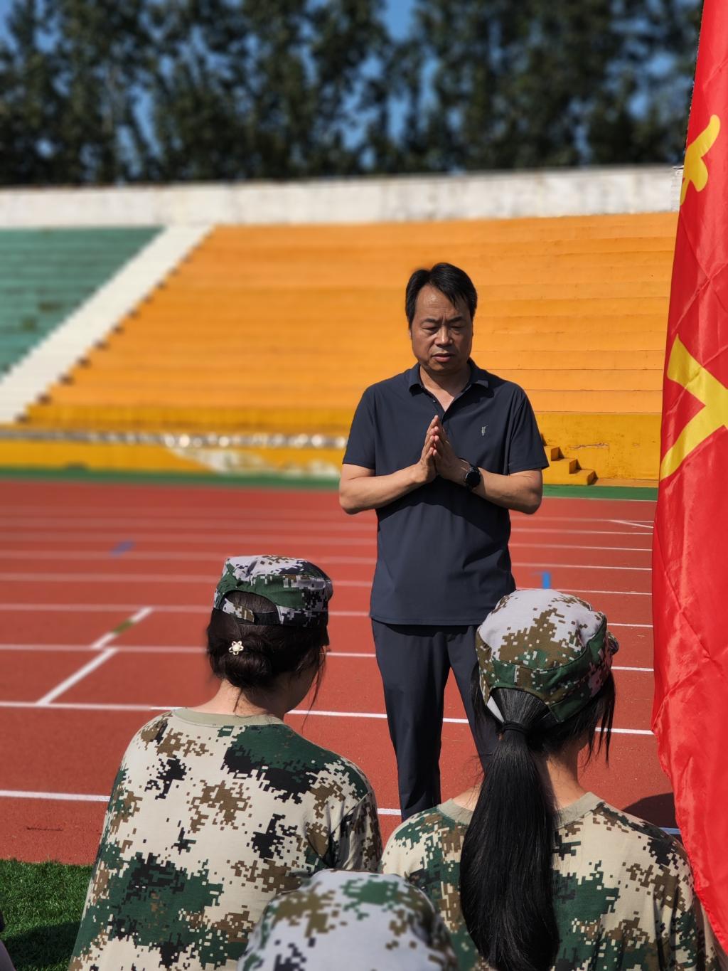 学院党委张爱萍书记肯定了同学们的训练成果,并向同学们克服困难、坚持训练给予肯定;向承担此次承训任务的各位教官、指导员和后勤保障人员表示衷心的感谢并致以崇高的敬意。他表示,希望全体参训学员珍惜军训时光,发扬人民解放军特别能吃苦、特别能战斗、特别讲纪律的优良传统和作风,为大学学习生活打下坚实基础。随后,军训团团长陈志军郑重承诺将牢记张书记嘱托,科学施训、安全组训,用教官的一言一行为全体参训学员树立学习榜样。