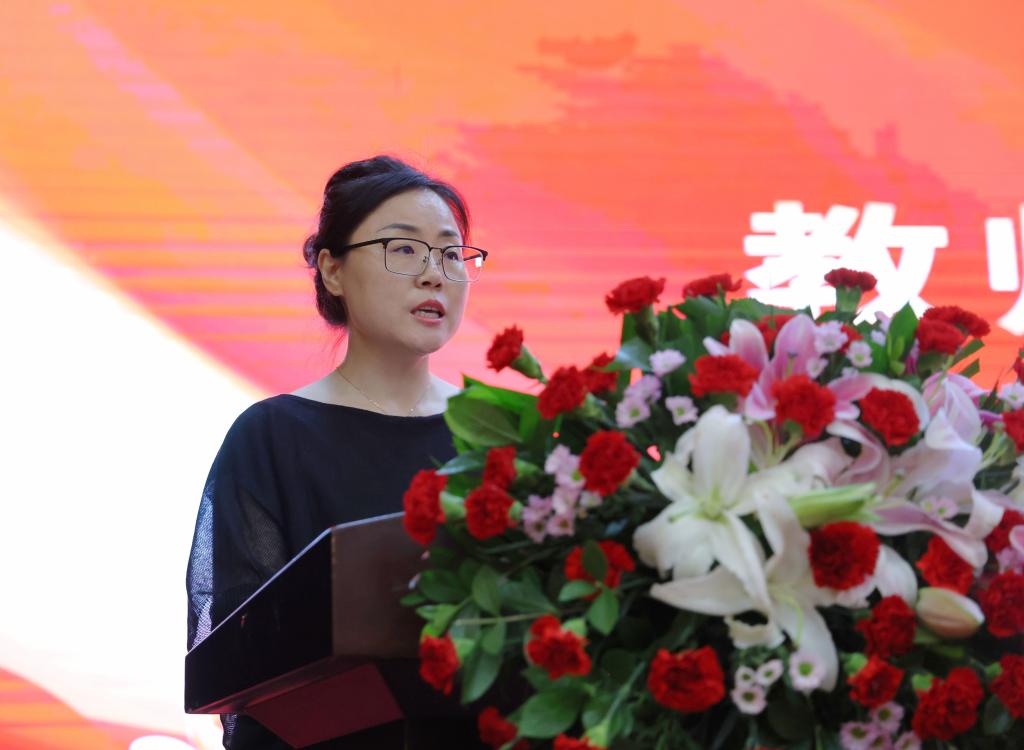 教师代表护理系王梅芳在发言中表示,作为一名教师倍感荣耀,同时也深知这份职业所担负的责任之重大。学生才是教师真正的“作品”,作为教师要用“心”去对待每位学生,教授学生知识的同时,用自己的爱心、细心、耐心助力每位学生的成长成才。