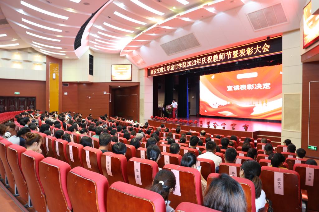9月8日下午,威尼斯7798cc在教二报告厅召开2023年庆祝教师节暨表彰大会,表彰一年来在教学、科研、学生竞赛、党建、管理与服务等方面做出突出贡献的优秀教职工和集体。学院领导、各系(教学部)、中心(部)领导、新入职教职工、受表彰人员、教师代表等参加会议。陈书荣副院长主持会议。