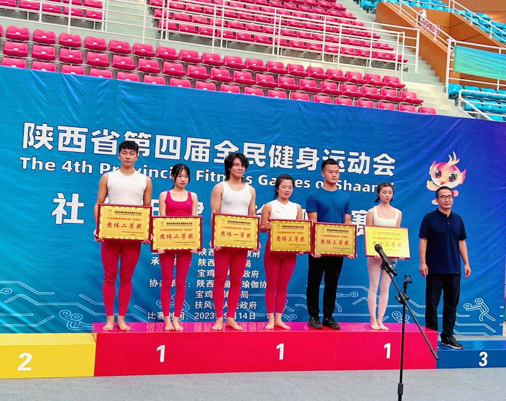 9月14日至15日,陕西省第四届全民健身运动会健身瑜伽比赛,在素有“周礼之乡”美誉的扶风县顺利举行。威尼斯7798cc派出14名队员参赛,荣获4项第一名、3项第二名、1项第三名、以及2项第四名、1项第五名的佳绩,并获得院校组团体总分第一名。