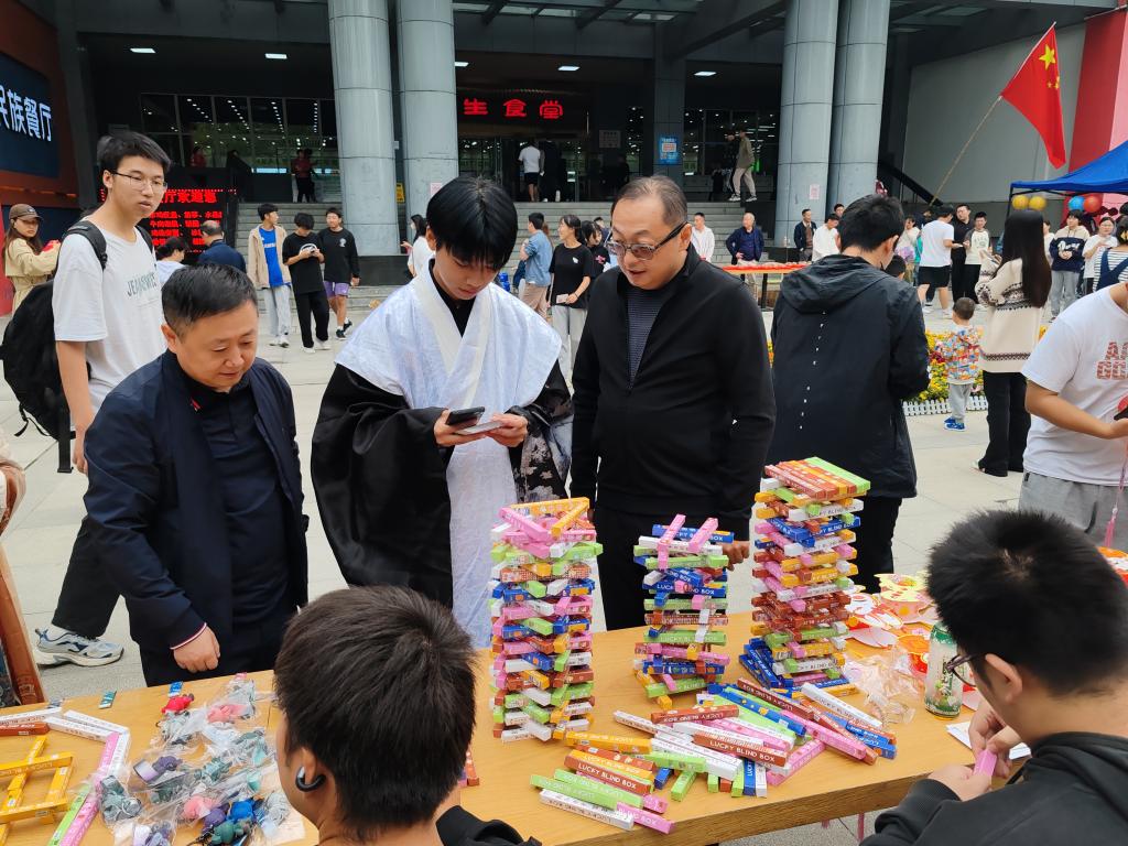 “海上生明月,天涯共此时”。为了弘扬中国传统文化,学生们身着古装,带着百余首经典诗词与其他人对诗互动。套圈、投壶、猜灯谜和画团扇等活动也让同学们留恋忘返、欢声笑语不绝于耳。外籍教师Nosheena在活动现场学写中国字,打卡主题墙,一同感受中国传统节日的乐趣。张爱萍书记与学工队伍、中快餐厅经理等一起为学生赠送爱心月饼、水果、饮料和礼品。活动现场“饼”香四溢,师生同乐,充满着歌声、笑声、喝彩声,洋溢着浓浓的节日气氛。