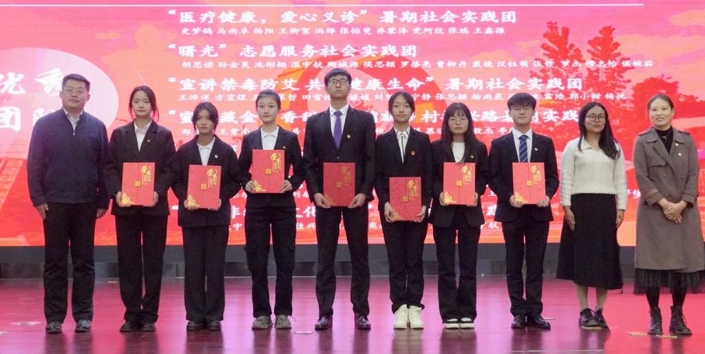 青春志愿行,实践我先行。大会在嘹亮的团歌声中拉开序幕。团委金牧羊汇报了2023年暑期“三下乡”社会实践活动开展情况。随后,学生服务中心主任辛红伟宣读《关于2023年暑期“三下乡”社会实践活动表彰的决定》。各位领导、嘉宾为获奖单位、团体及个人颁发荣誉证书。