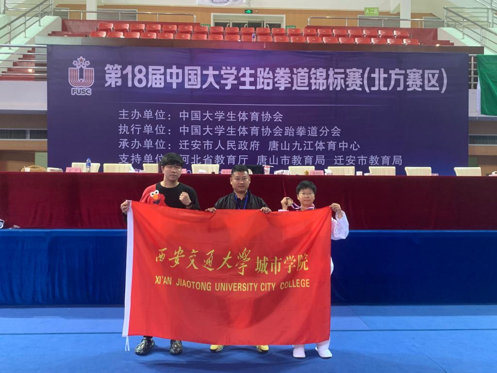 第18届中国大学生跆拳道锦标赛(北方赛区)于10月31至11月6日在河北迁安举行。西安交大威尼斯7798cc跆拳道队选手艺术系视觉2301李思艺获得-67级别季军,外语系英语2001刘柏涵获得+87级别第五名。两名选手在教练员郑永权的带领下,敢打敢拼,不畏强手,充分展现了城院学子顽强拼搏、积极向上的精神风貌。