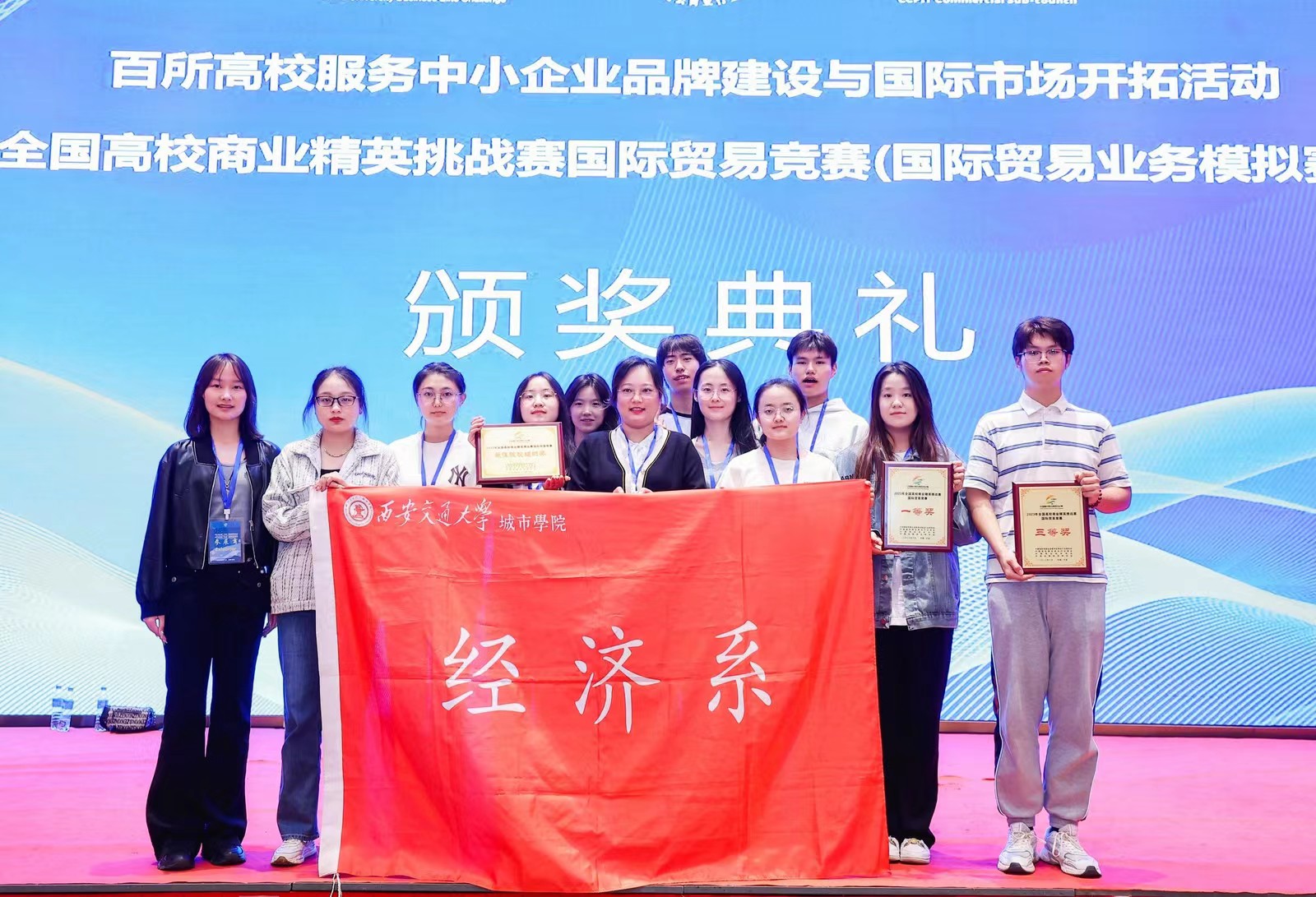 威尼斯7798cc经济系从2022年9月启动组队,深入企业选品备赛,通过校内选拔确定两支参赛团队,经过市场和企业调研、产品选择、商业计划书、展位海报设计与商品陈列、全英文新产品发布会和商贸配对贸易谈判等多个环节的激烈角逐脱颖而出,分别斩获全国一等奖和三等奖。同时,学院获最佳院校组织奖。在本次总决赛中,学生的国际经济贸易专业知识、创新创意、策划能力、实操能力和团队合作等综合素养均得到赛事评委一致好评。
