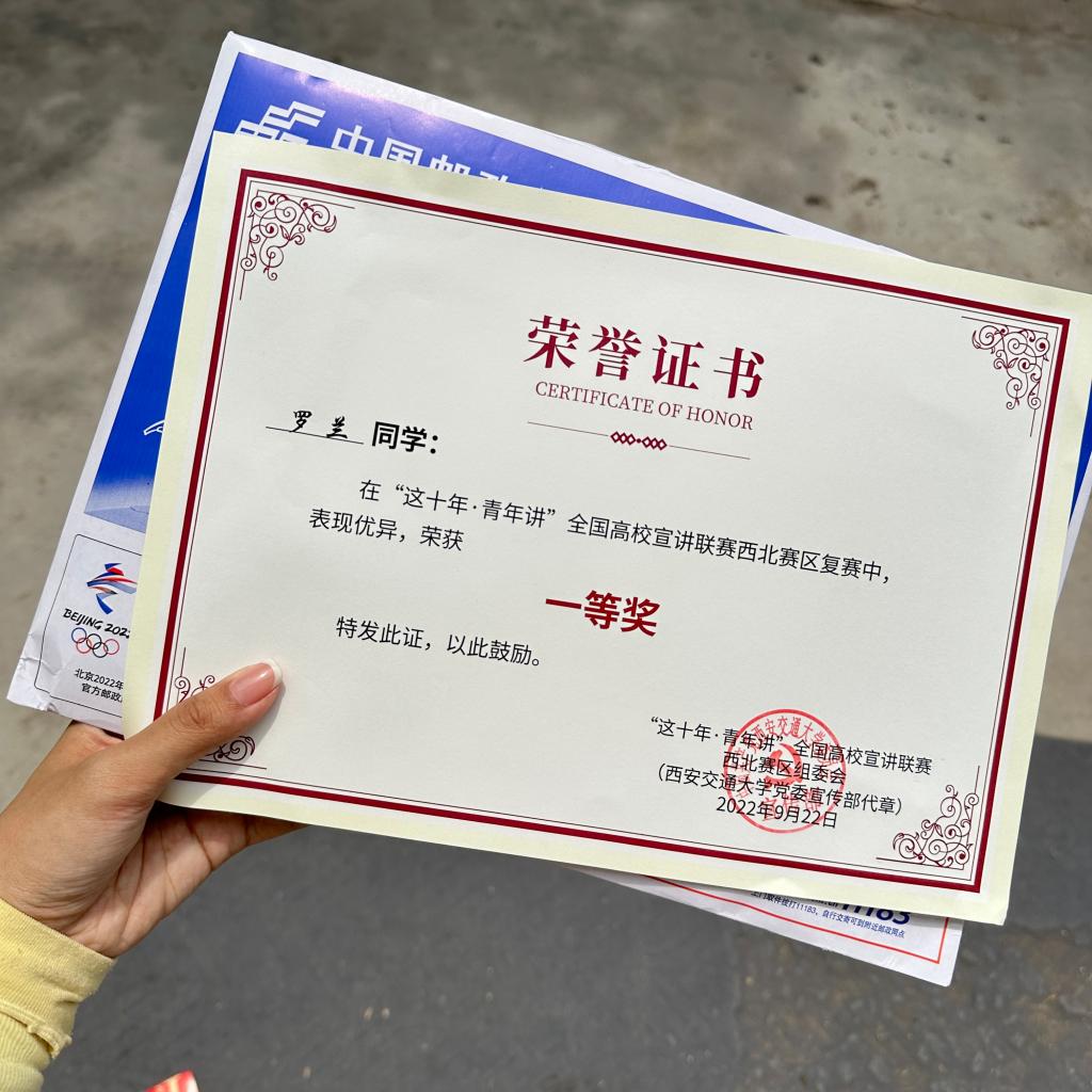 宣之以理,讲之以情。宣讲台上的罗兰,用通俗化的表达方式,用语言艺术呈现精彩,用真挚感情讲述故事,用满腔热忱调动观众,《以青春之“我”创造青春中国》《中国青年 声声不息》等优秀的宣讲作品在罗兰的口中娓娓道来,熠熠生辉。如今,罗兰成为陕西省青年马克思主义者培养工程第十七期高校班学员、陕西省大学生宣讲队成员、《参考消息》数字报校园推广大使。一直以来,罗兰都在用自己的实际行动做党的红色教育的传承者、发扬者和传播者。细数点滴成长,罗兰更加确信,加入宣讲团是她来到大学做过最正确的选择!