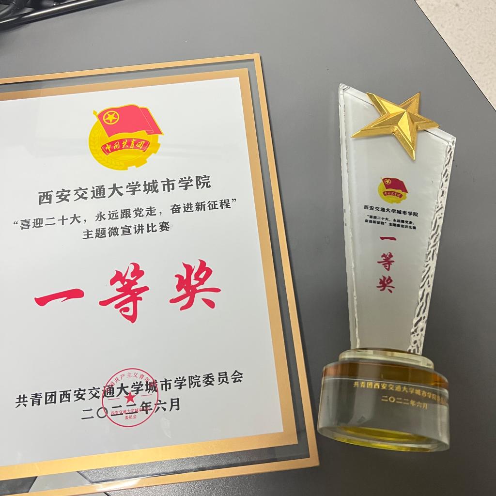 在学院主题微宣讲比赛中获得一等奖