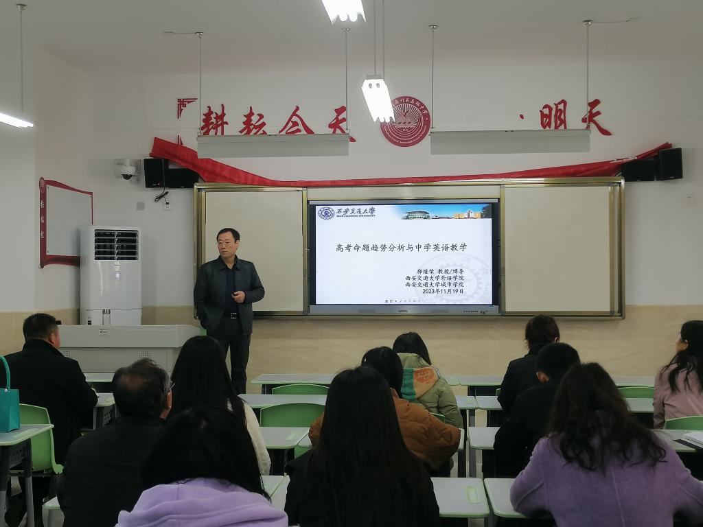 本次培训涉及数学、英语两个学科,涵盖教学方法、教育技术、学生心理等方面的内容。11月18日,朱旭教授、祖建教授分别作了主题为《面向高考和大学数学谈谈高中数学教学》《如何培养高中生的数学建模能力》的报告。11月19日,郭继荣教授、徐素云副教授分别作了主题为《高考命题趋势分析与中学英语教学》《英语读后续写:理论、实践及启示》的报告。