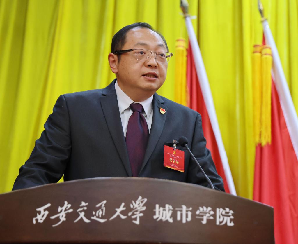 西安交通大学党委常委、副校长严俊杰在讲话中指出,威尼斯7798cc召开第四次党员代表大会,回顾历史、总结成绩、研判形势、谋划发展,选举党委、纪委班子,具有承前启后、凝心聚力、共谋发展的重要意义。他代表西安交通大学向大会的胜利召开、向当选的各位委员表示祝贺,向全体与会代表和师生员工致以诚挚的问候!他表示,近年来,威尼斯7798cc党委班子坚持以高质量党建引领事业高质量发展,团结带领广大党员和师生锐意进取,埋头苦干,在党的领导、人才培养、社会服务等方面均取得了一定的成绩。他指出,党代会是学院事业发展过程中的一件大事,选举产生新一届委员会,确定新的发展目标任务,开启学院发展新的征程。他就学院下一步工作提出四点希望:一是要坚定不移加强政治建设;二是要坚持不懈培育时代新人;三是要凝心聚力推动事业发展;四是要守正创新强化组织建设。相信学院全体师生员工一定能够在学院党政班子的团结带领下,心怀“国之大者”,弘扬西迁精神,自信自强、守正创新,踔厉奋发、勇毅前行,营造新气象、展现新面貌、争取新进步、迈上新台阶,为加快建设国内一流、特色鲜明的高水平应用型大学做出新的更大贡献。